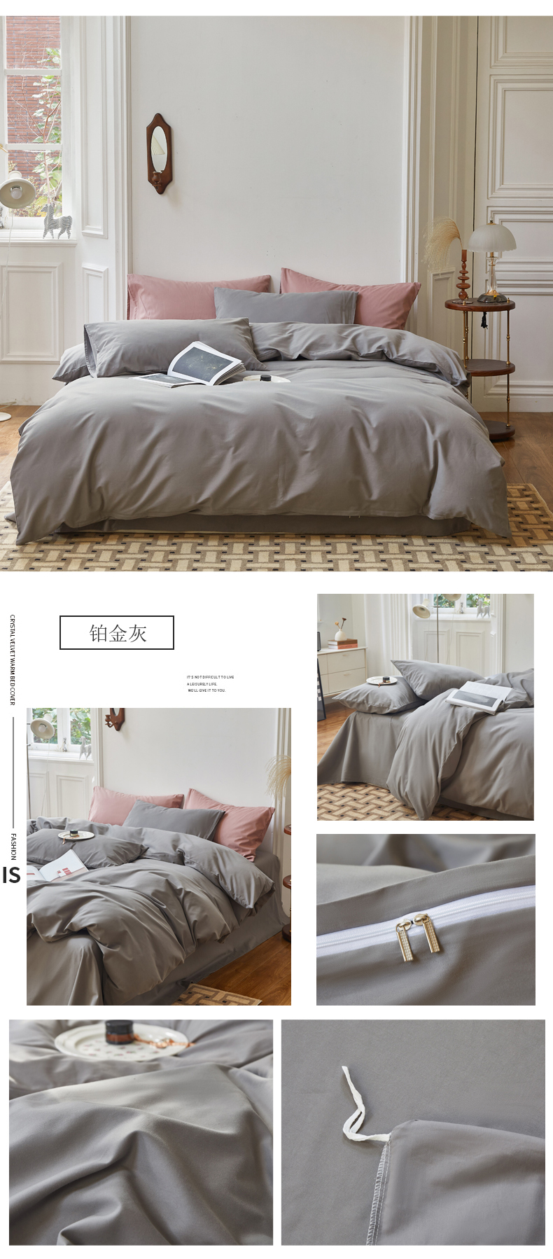 商品名称:怡家居 2023新款全棉100支磨毛四件套 铂金灰