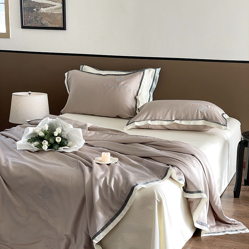 汇庭 2023新款大豆蛋白纤维山茶花夏被 香槟金