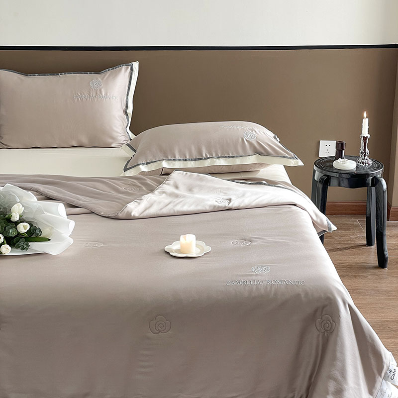 商品名称:汇庭 2023新款大豆蛋白纤维山茶花夏被 香槟金