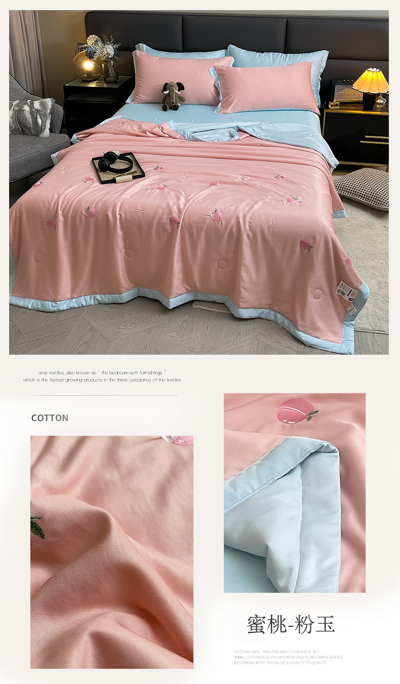 商品名称:兄弟坊 2025新款莱赛尔兰精天丝刺绣夏被四件套 蜜桃-粉玉