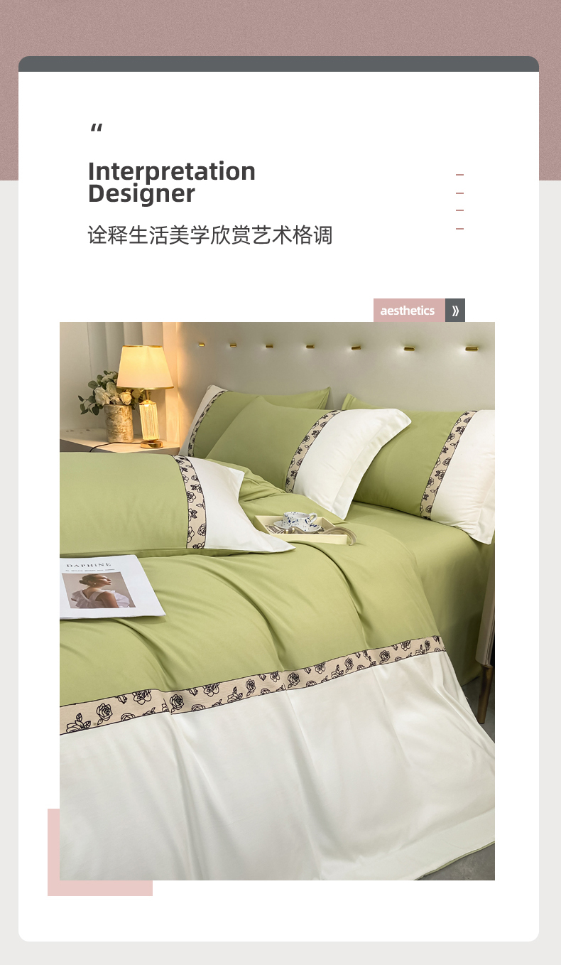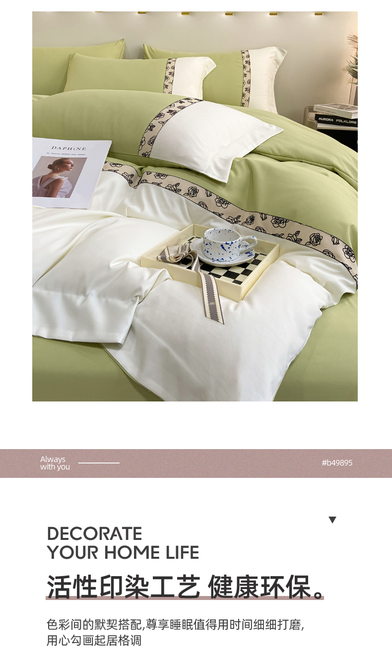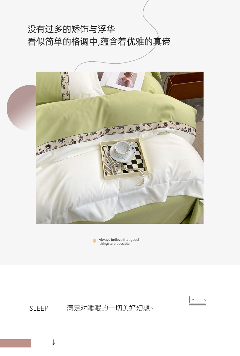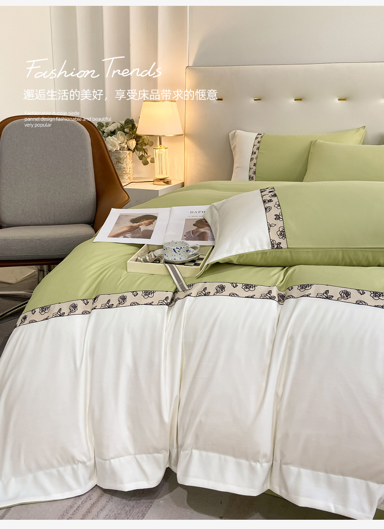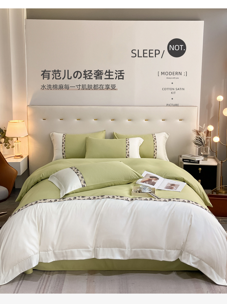 绒世界2024新款水洗棉麻印花四件套-简爱系列 简爱-绿+白