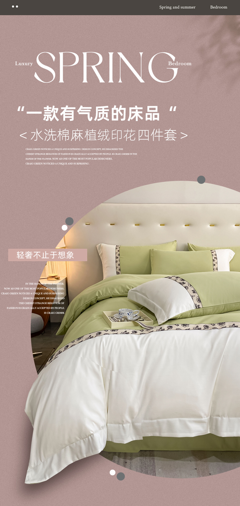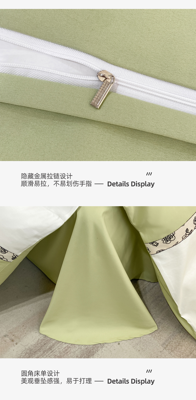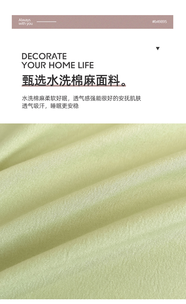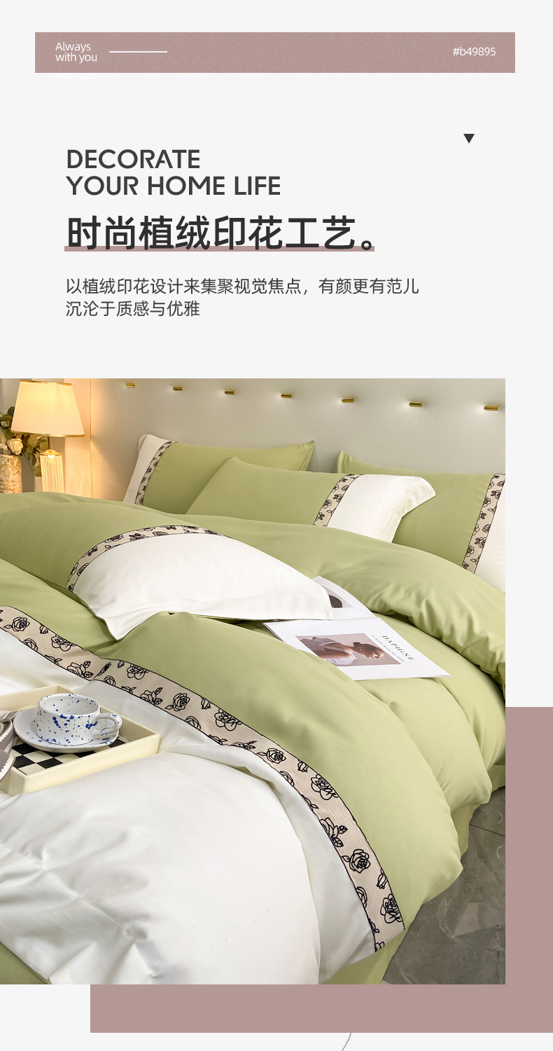 绒世界2024新款水洗棉麻印花四件套-简爱系列 简爱-绿+白