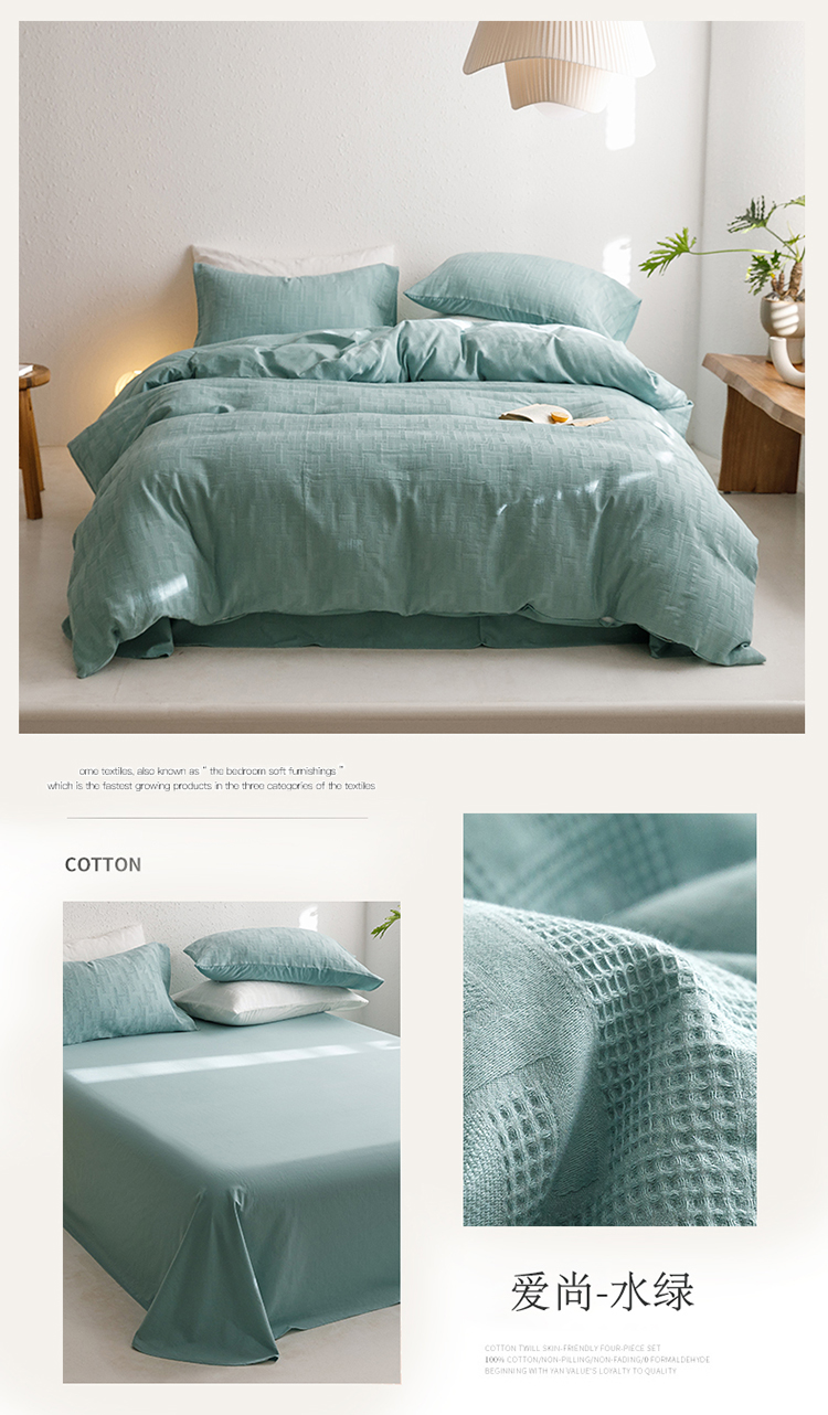 瑞米家居2023新款A类华夫格四件套-爱尚-迷之恋 爱尚-水绿