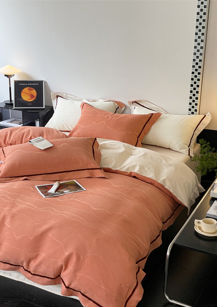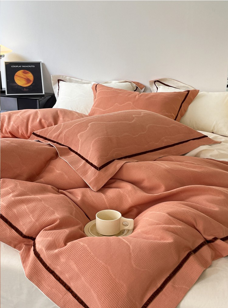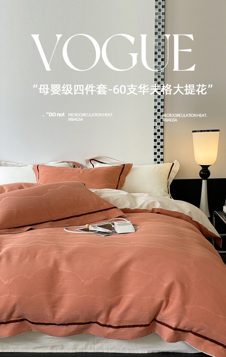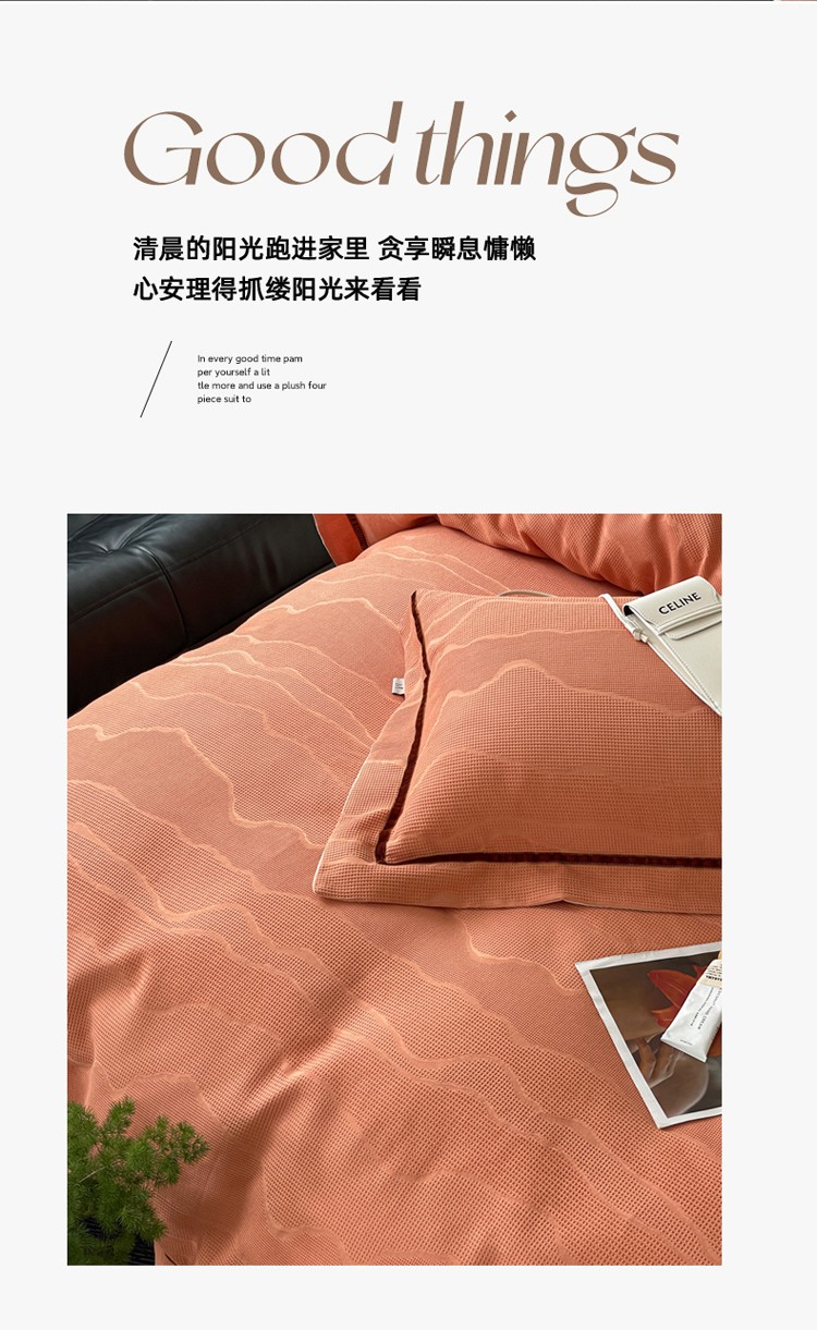玛奇朵2023新品60支华夫格大提花- 艾维斯诺系列四件套艾维斯诺-橙
