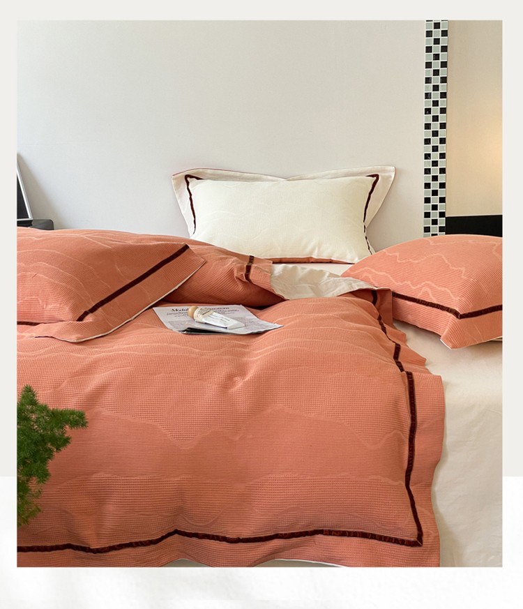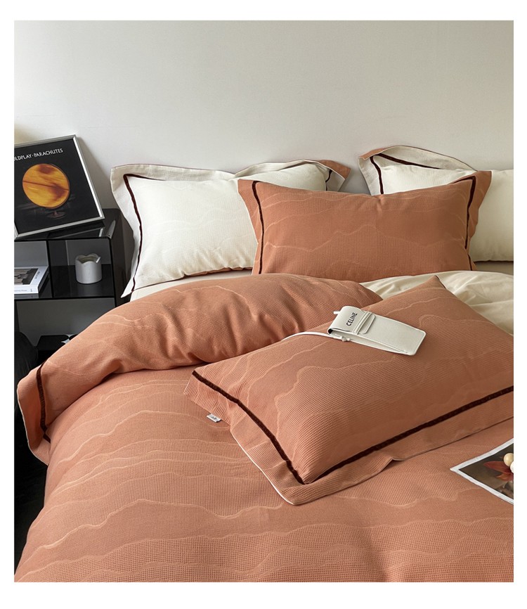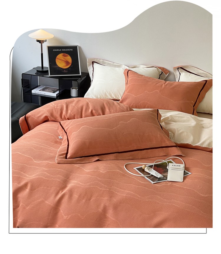 商品名称:玛奇朵2023新品60支华夫格大提花- 艾维斯诺系列四件套艾维斯诺-橙