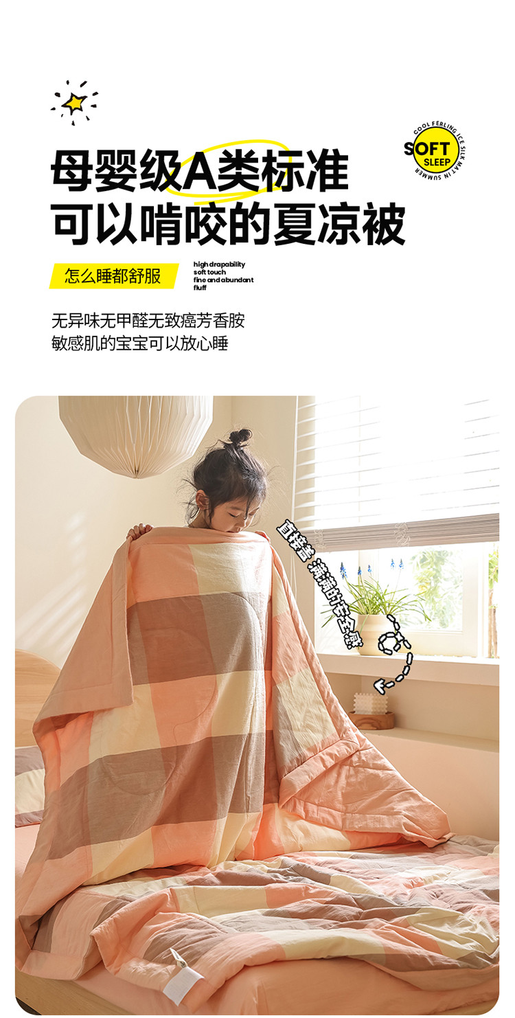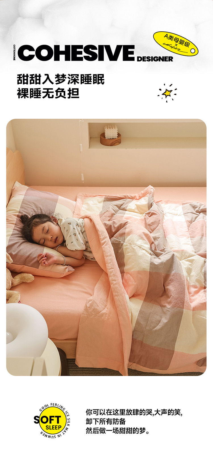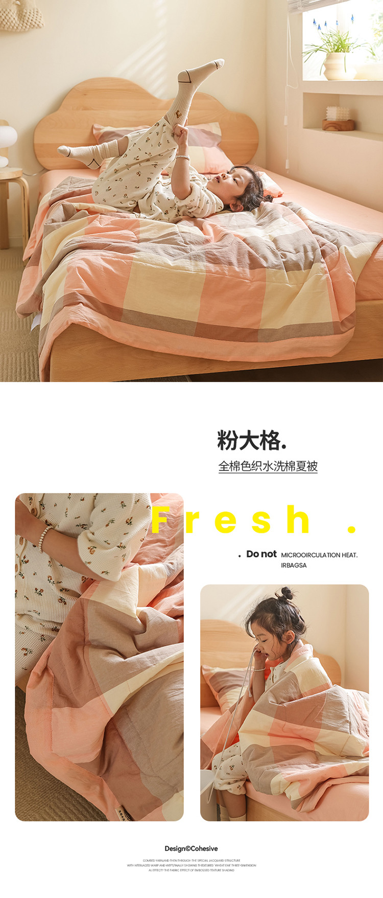 商品名称:寐眠 2023新款全棉色织水洗棉儿童夏被 粉大格