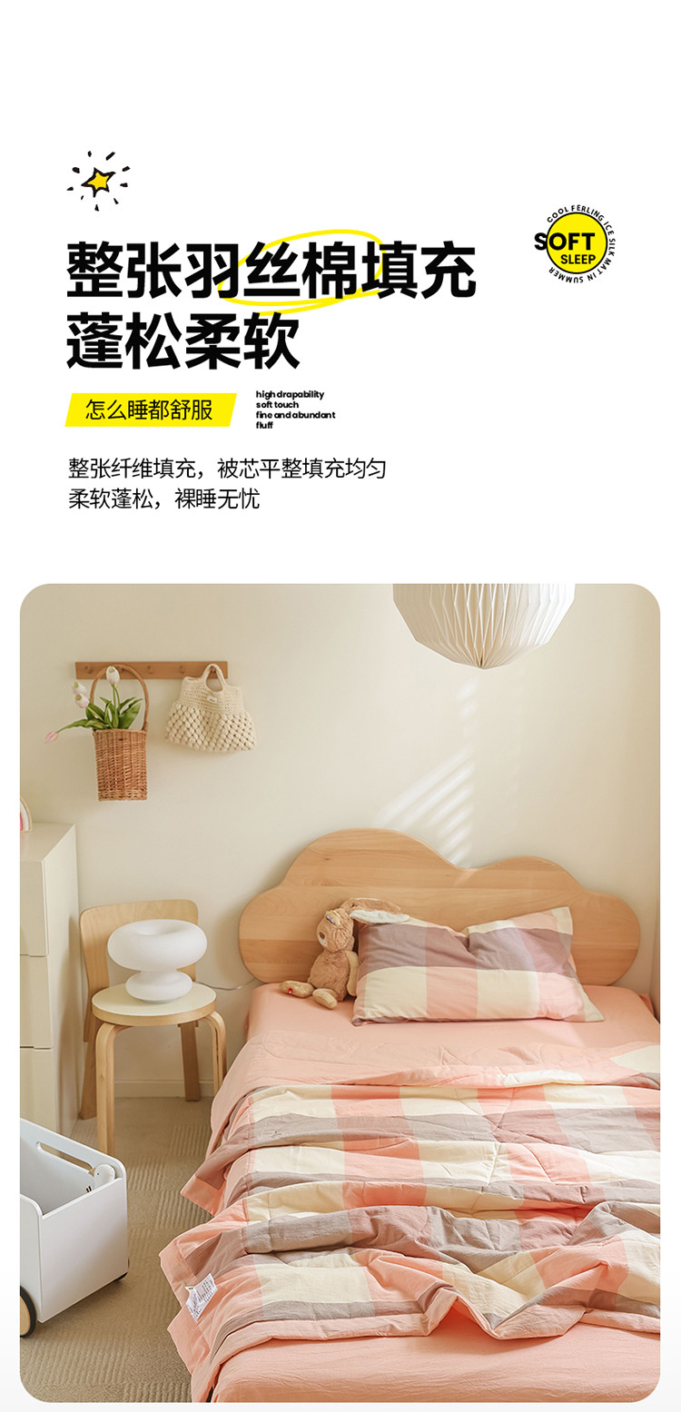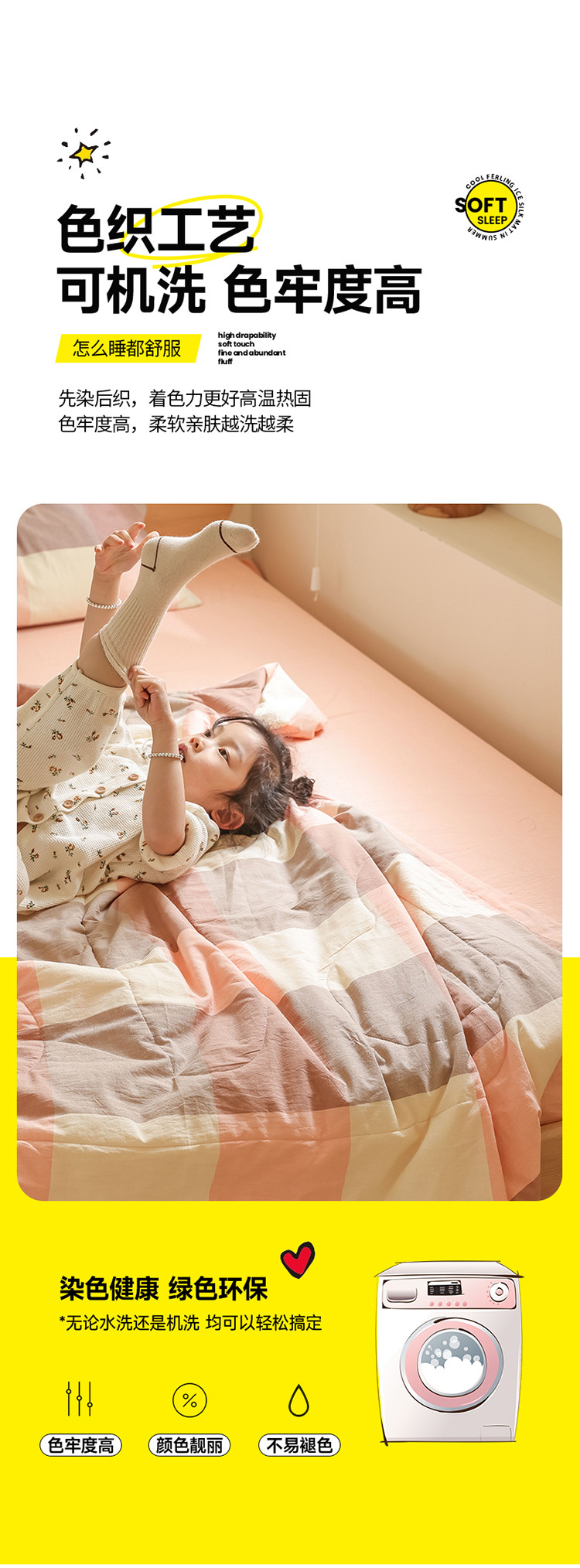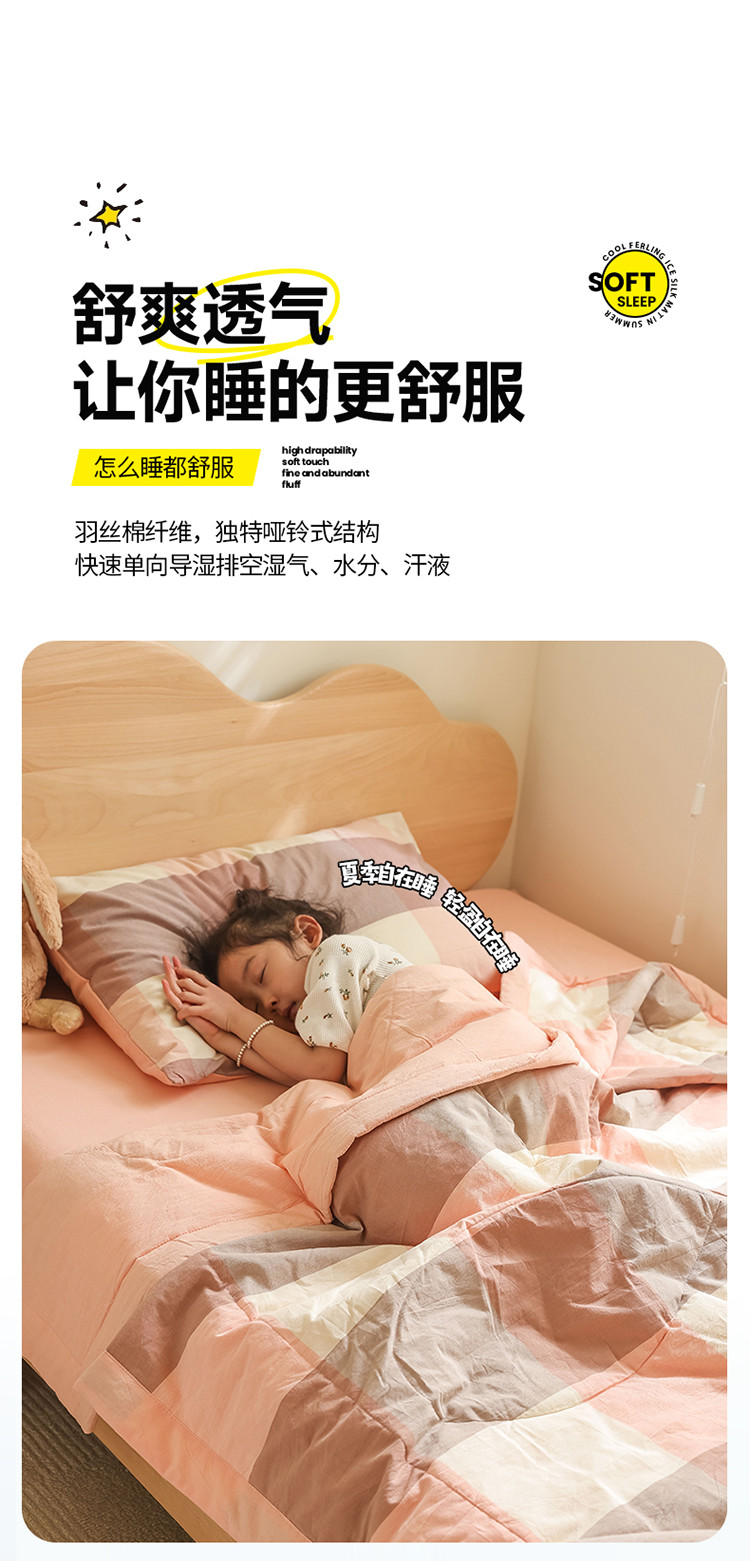 商品名称:寐眠 2023新款全棉色织水洗棉儿童夏被 粉大格
