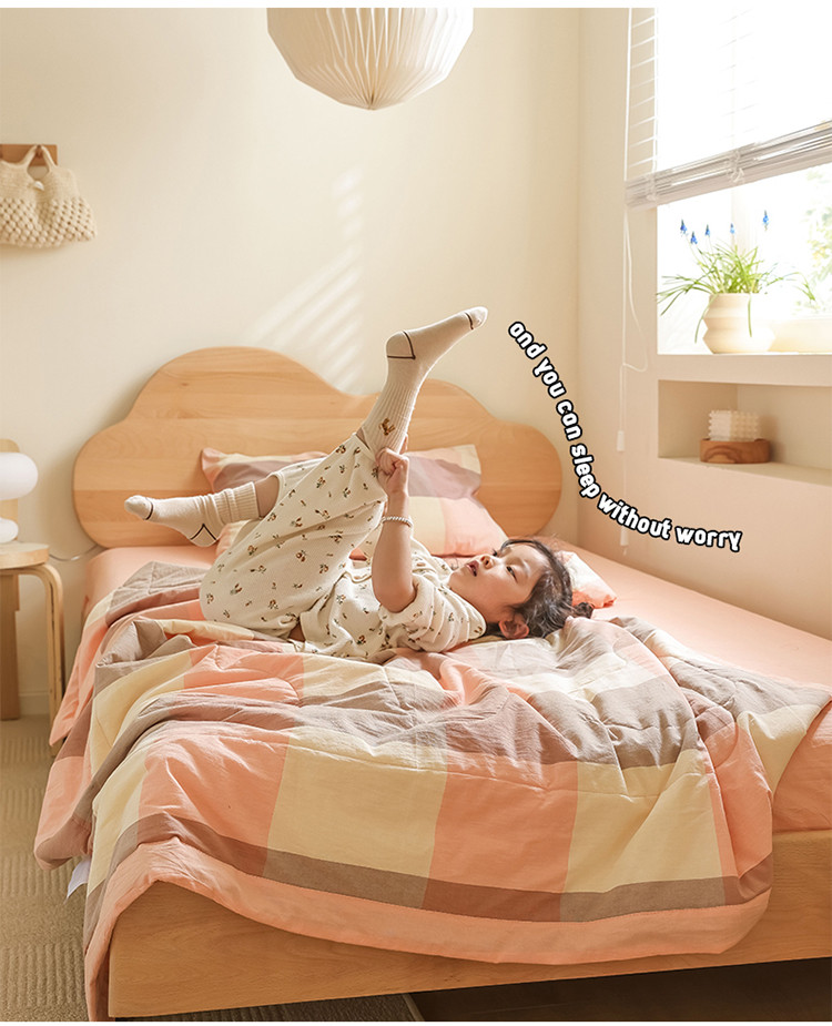 (总)寐眠 2023新款全棉色织水洗棉儿童夏被,粉大格,粉小格,灰白格,蓝大格,蓝小格,雾蓝格,小粉格