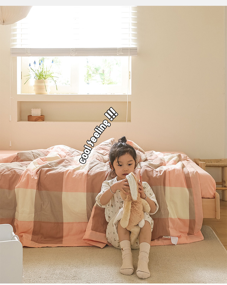 寐眠 2023新款全棉色织水洗棉儿童夏被 粉大格