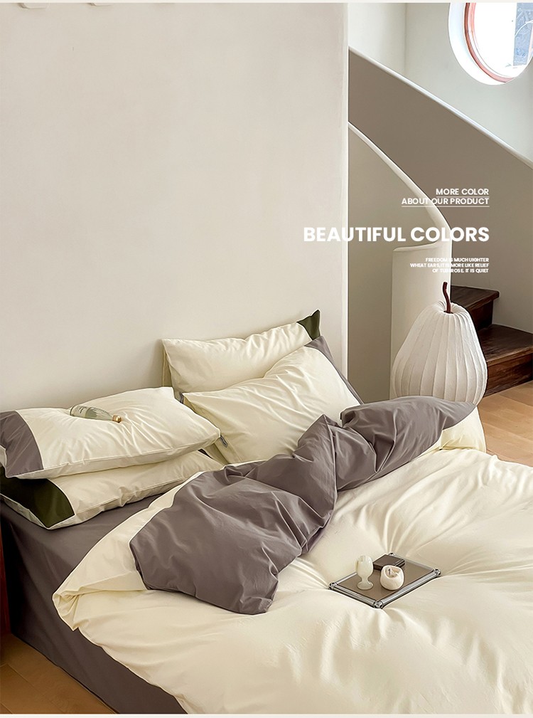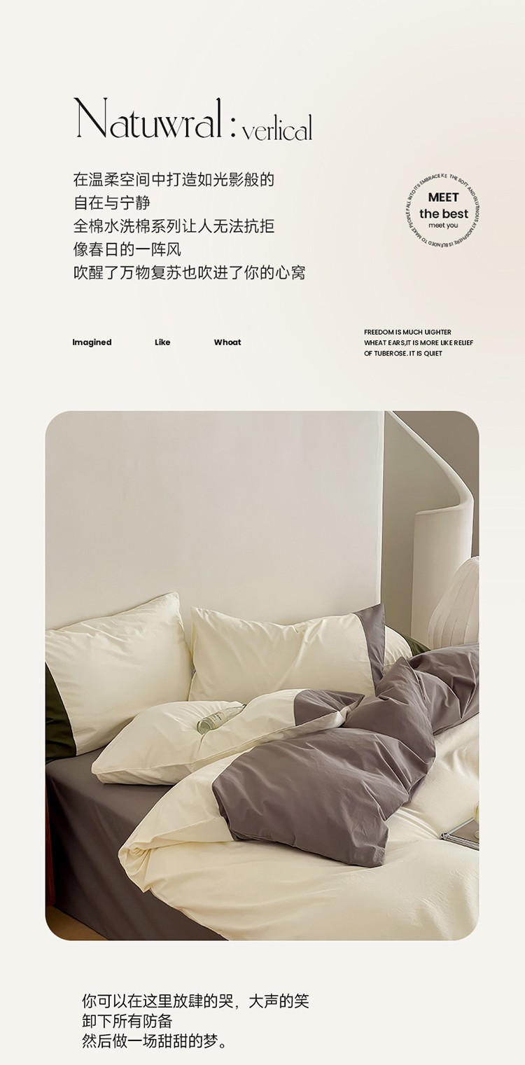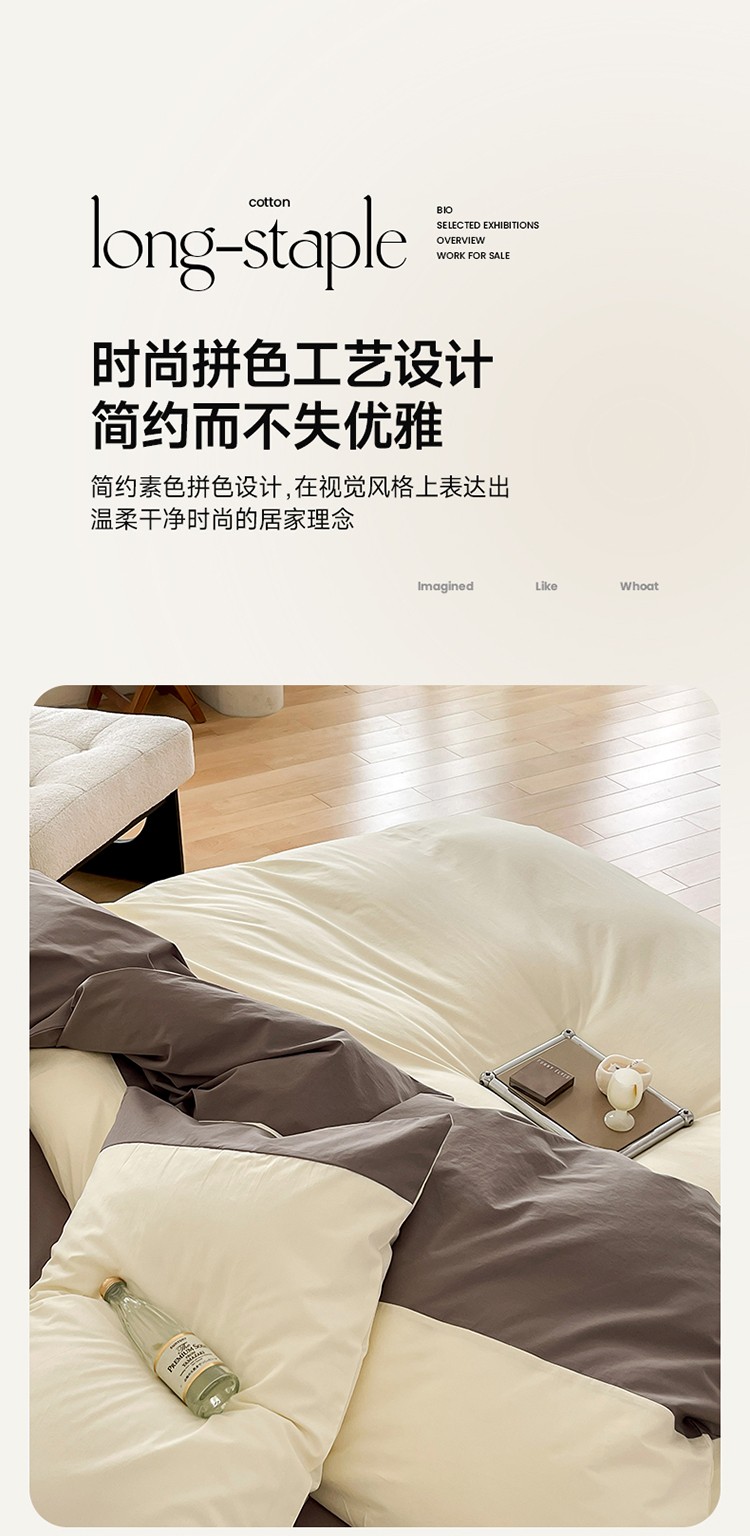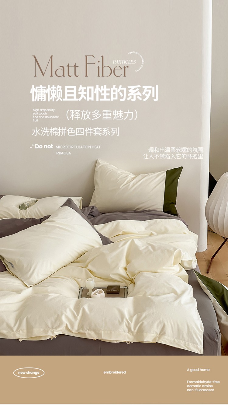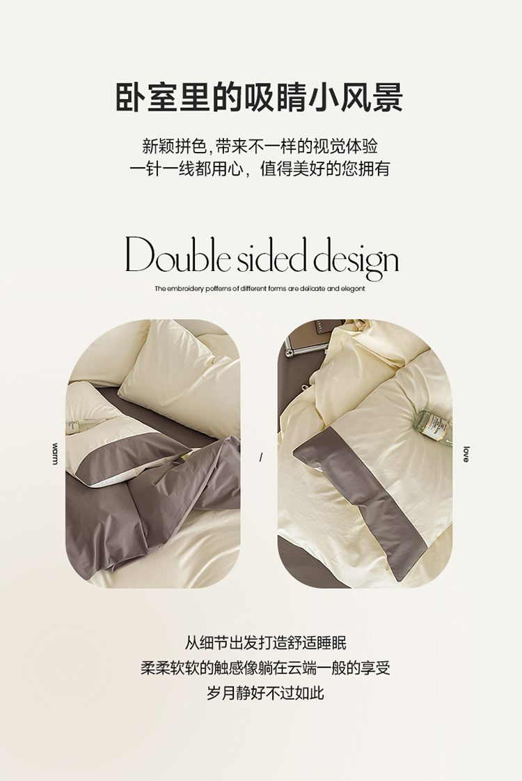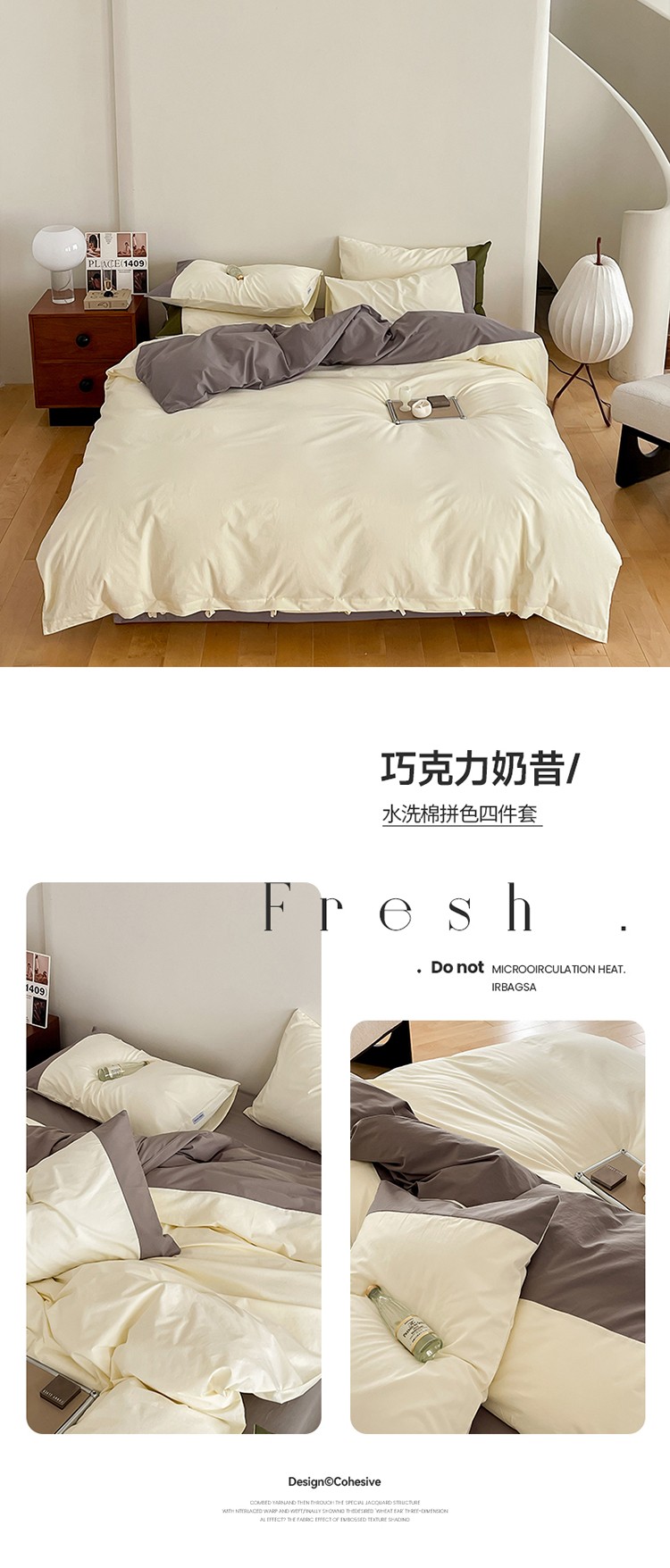 华超针织 2023新款水洗棉拼色四件套 巧克力奶昔