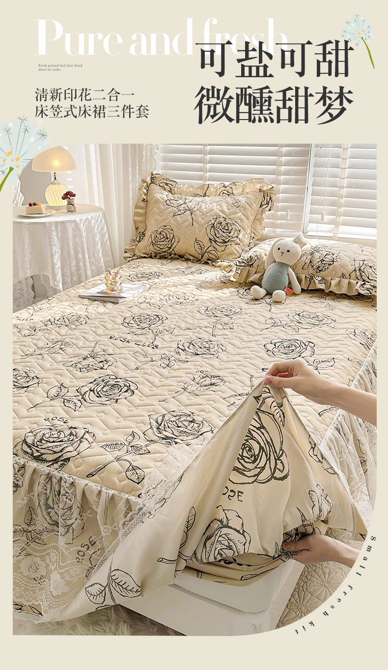 当前位置: 91家纺网 > 商品网购 > 床品套件 > 三件套 > 宜凡 2023新款云朵棉床笠式床裙三件套 嫣语