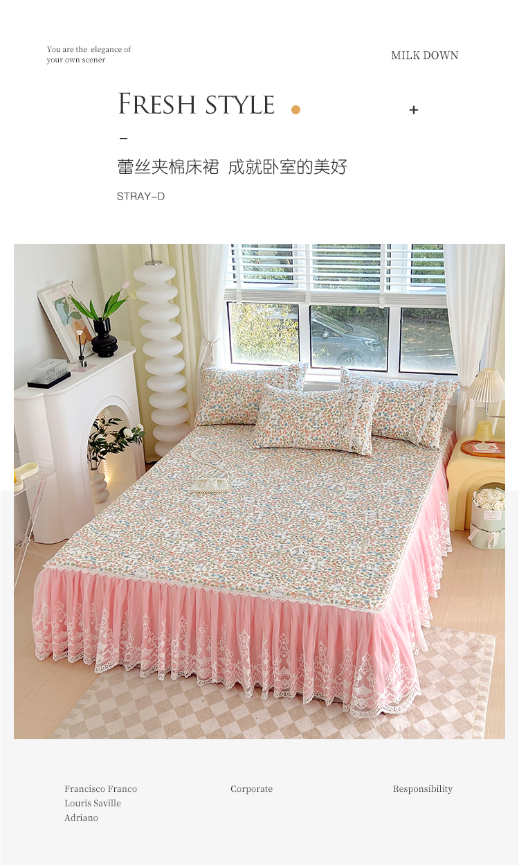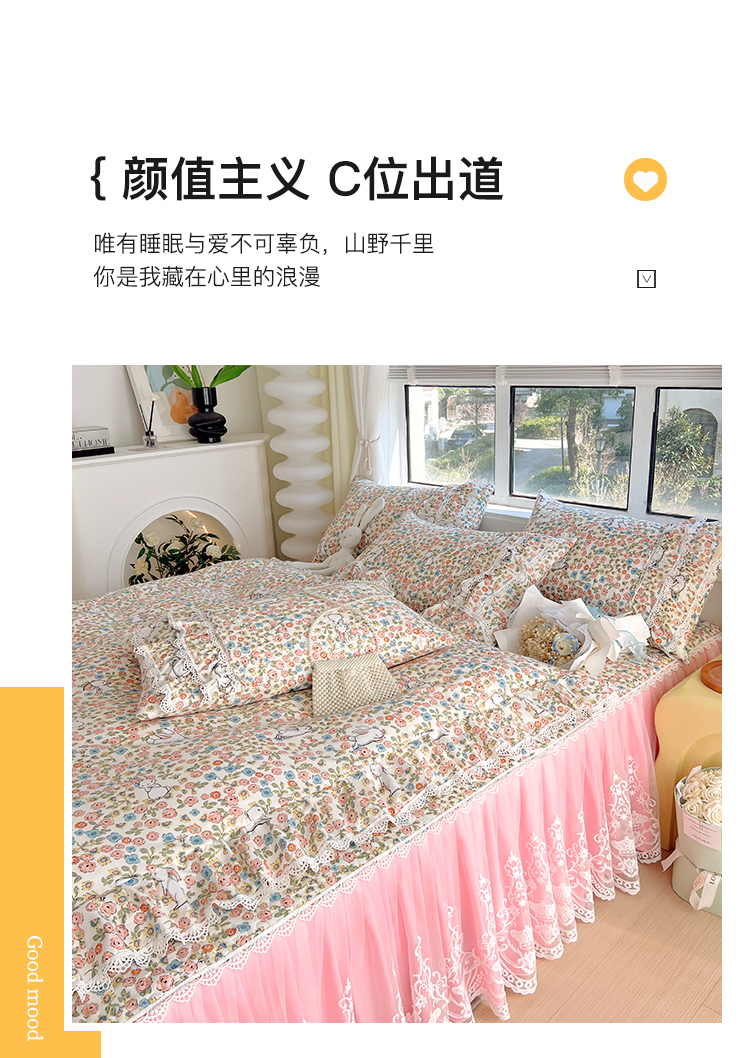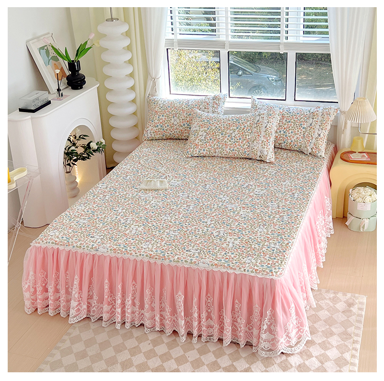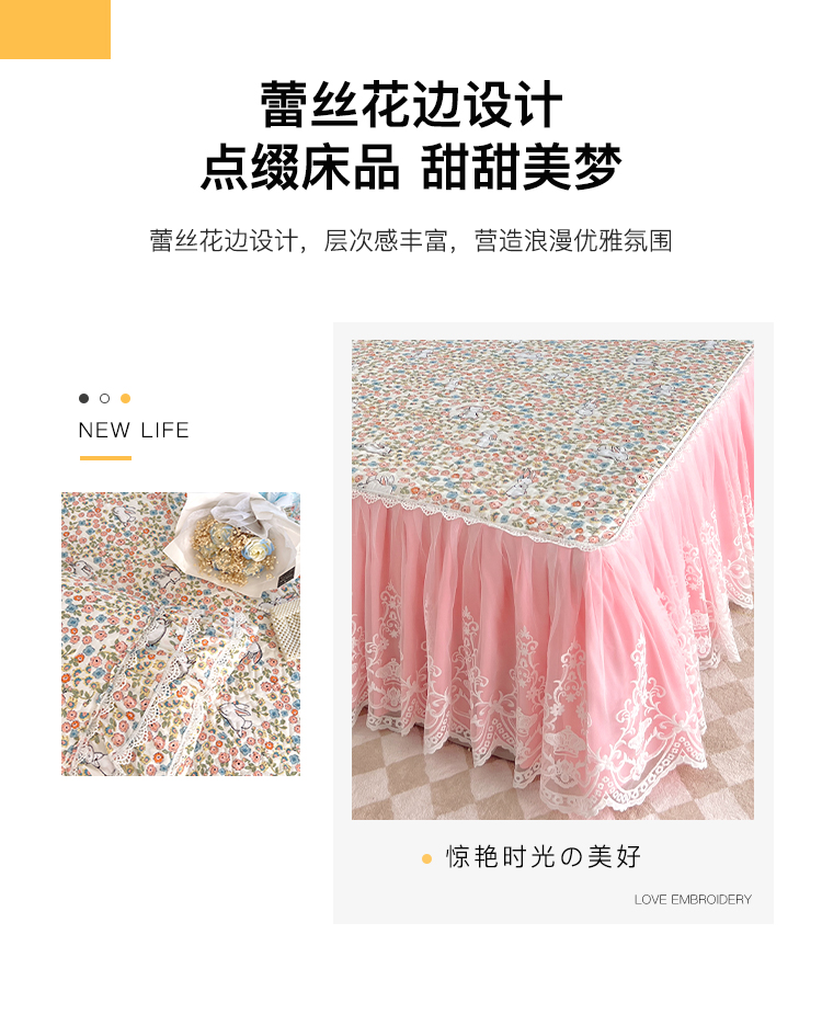 罗艺轩 2024新款法式风蕾丝夹棉床裙三件套 花想容-花丛兔