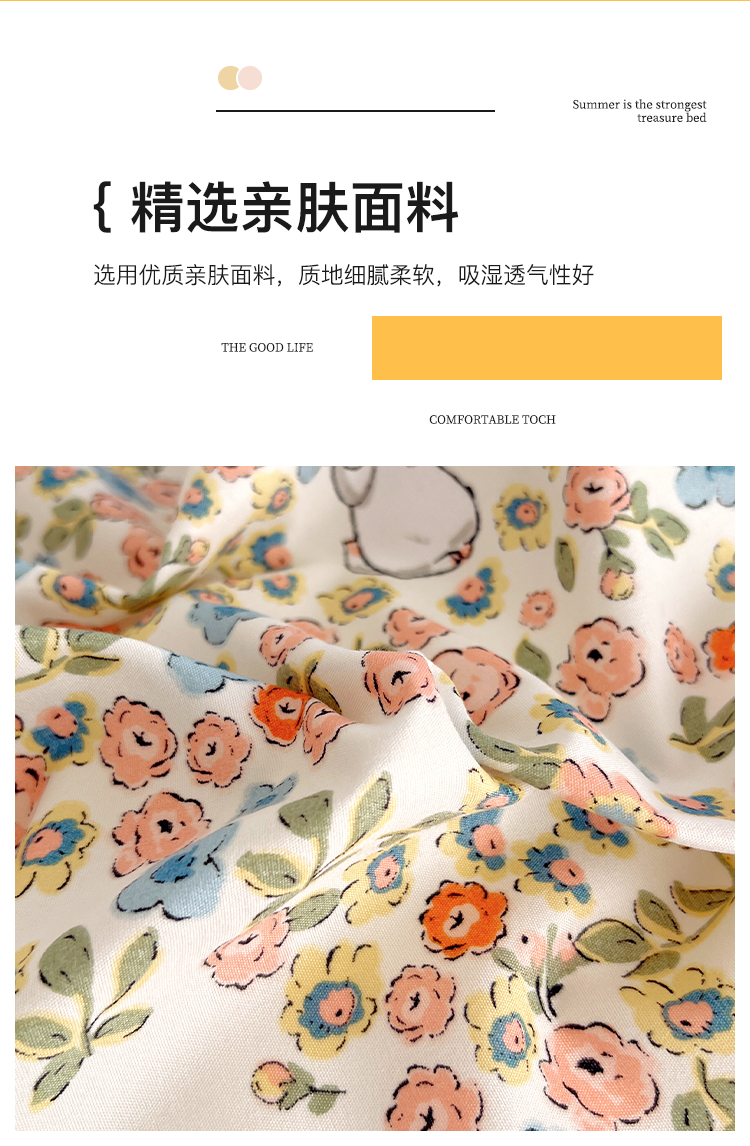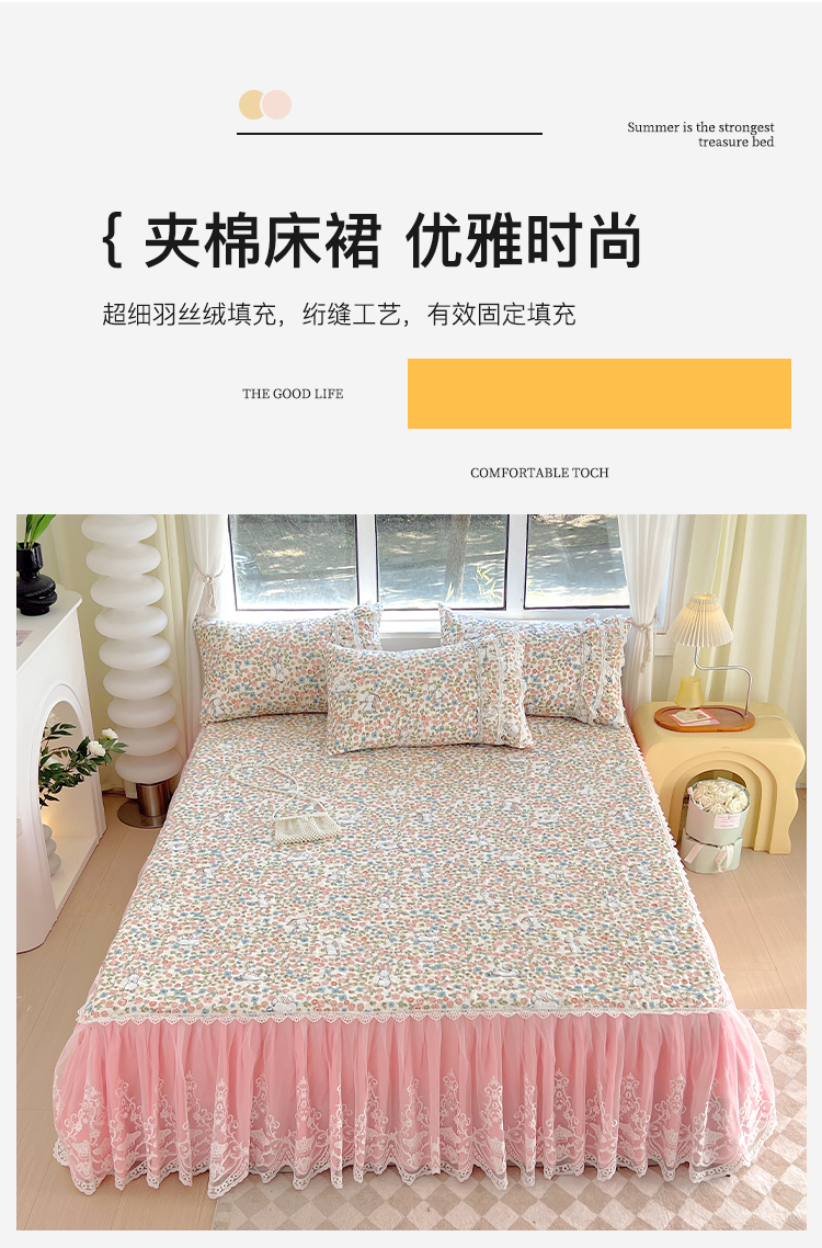 商品名称:罗艺轩 2024新款法式风蕾丝夹棉床裙三件套 花想容-花丛兔