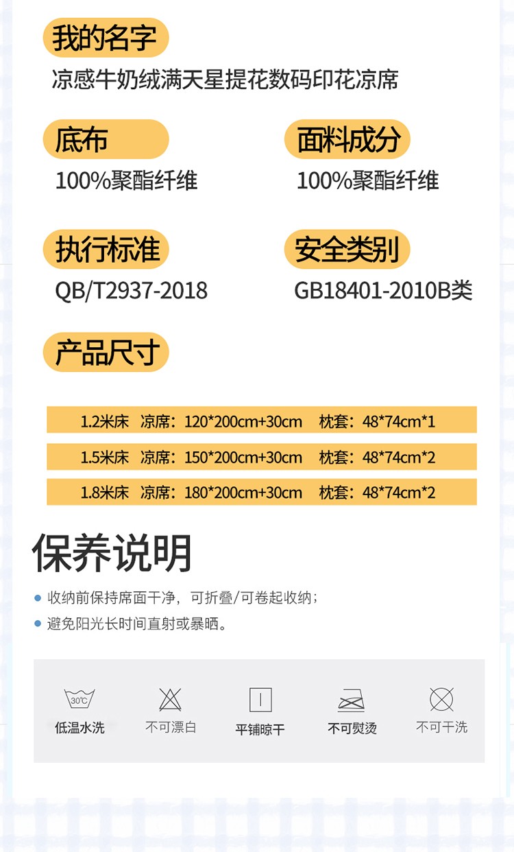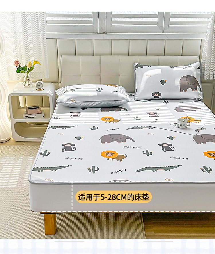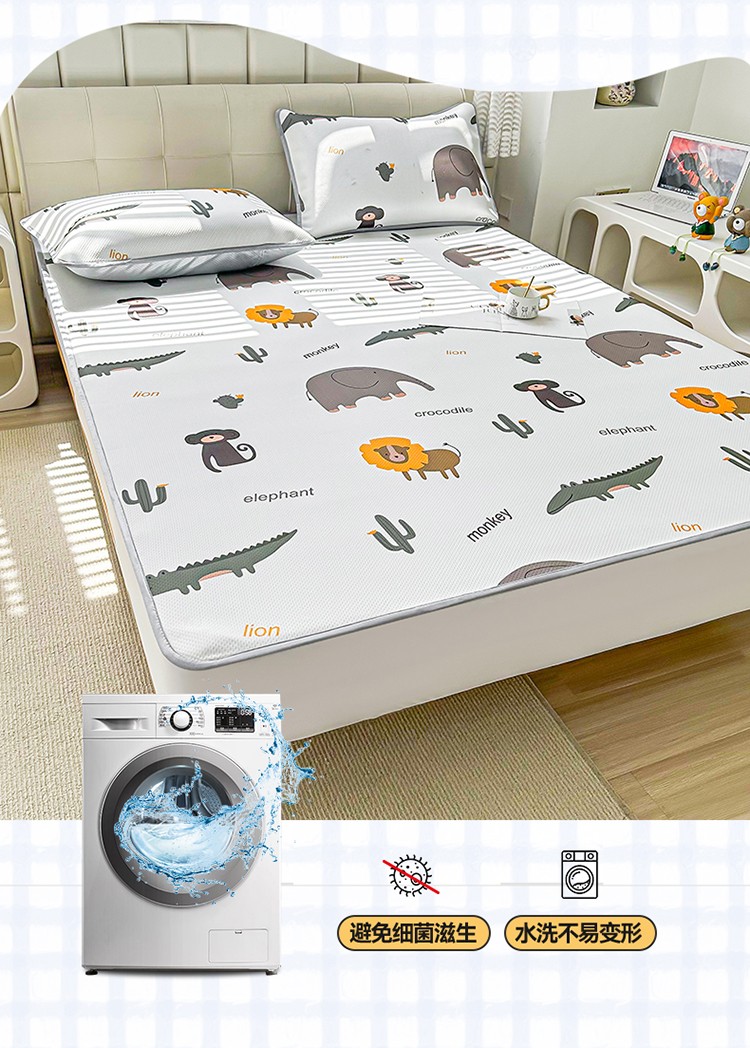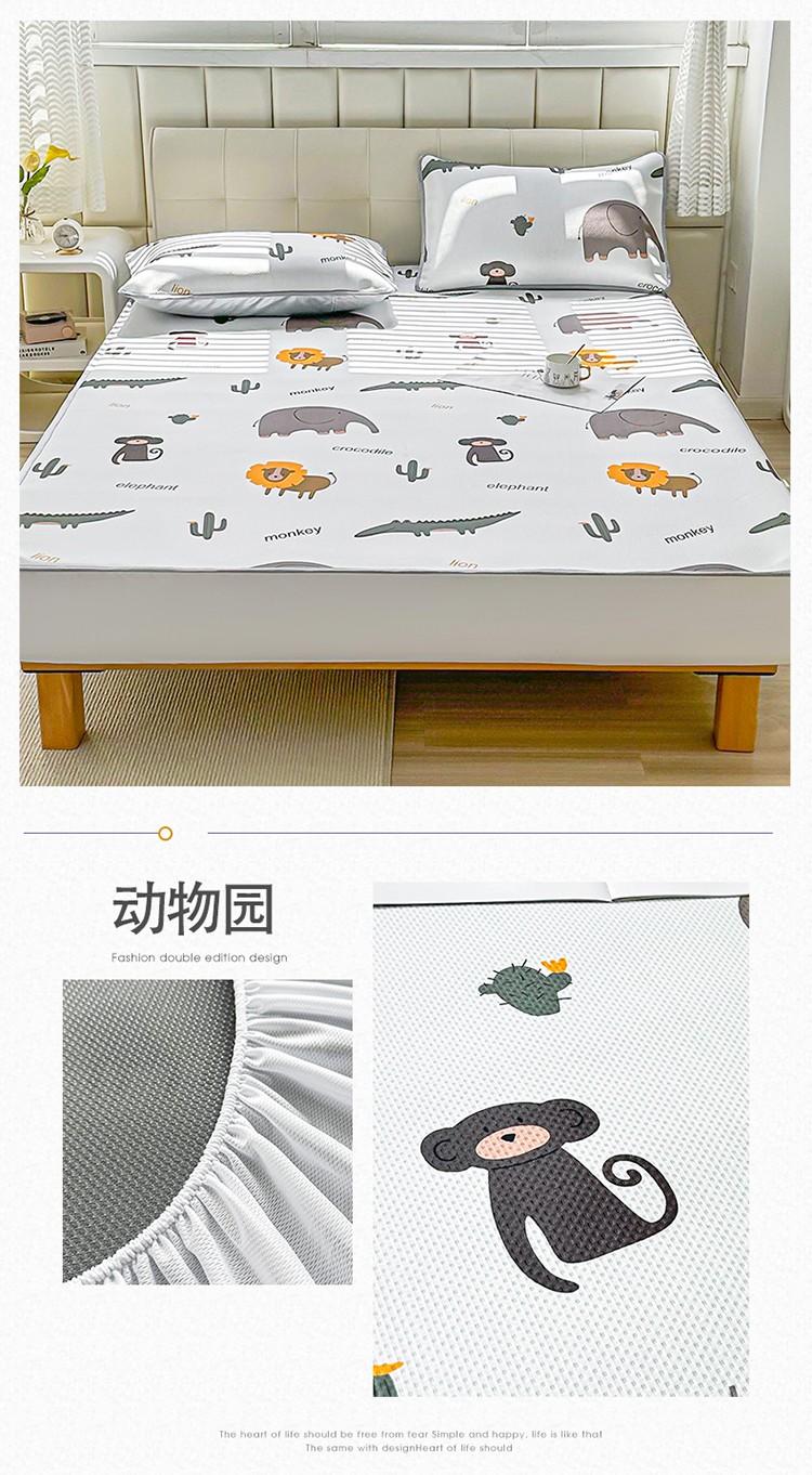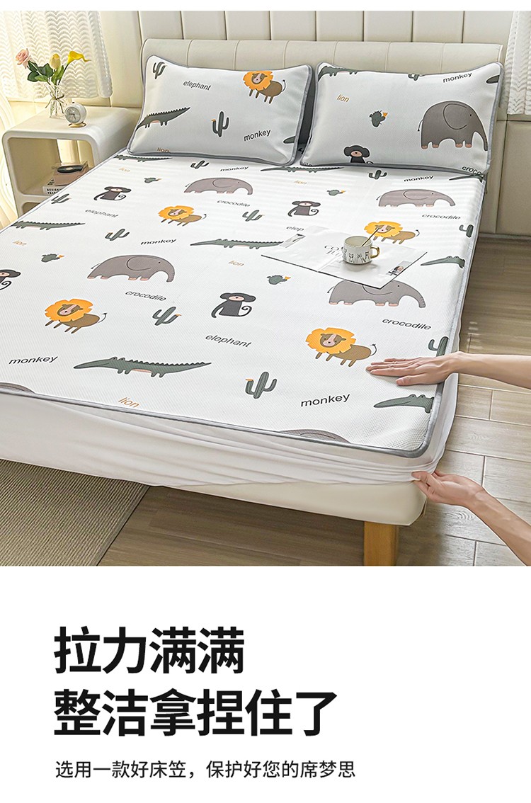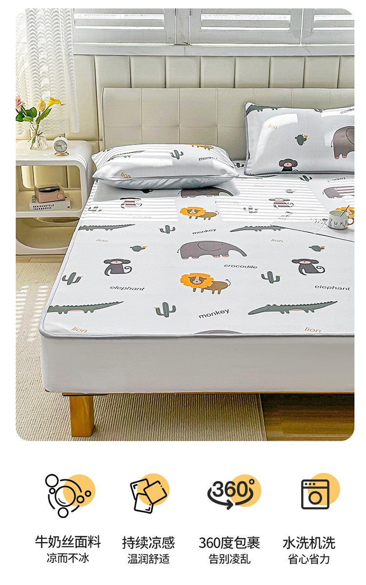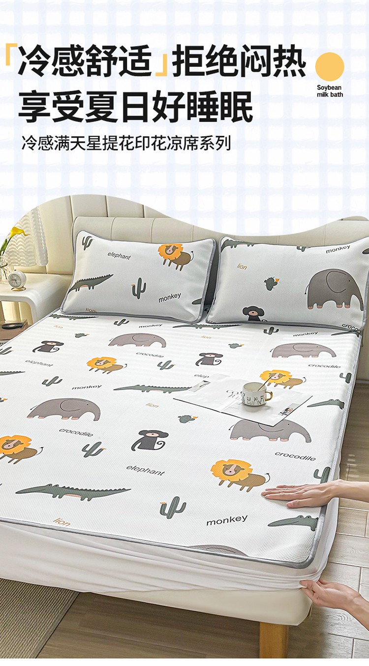 商品名称:宅部落 2023新款凉感牛奶丝满天星提花印花凉席三件套 动物园