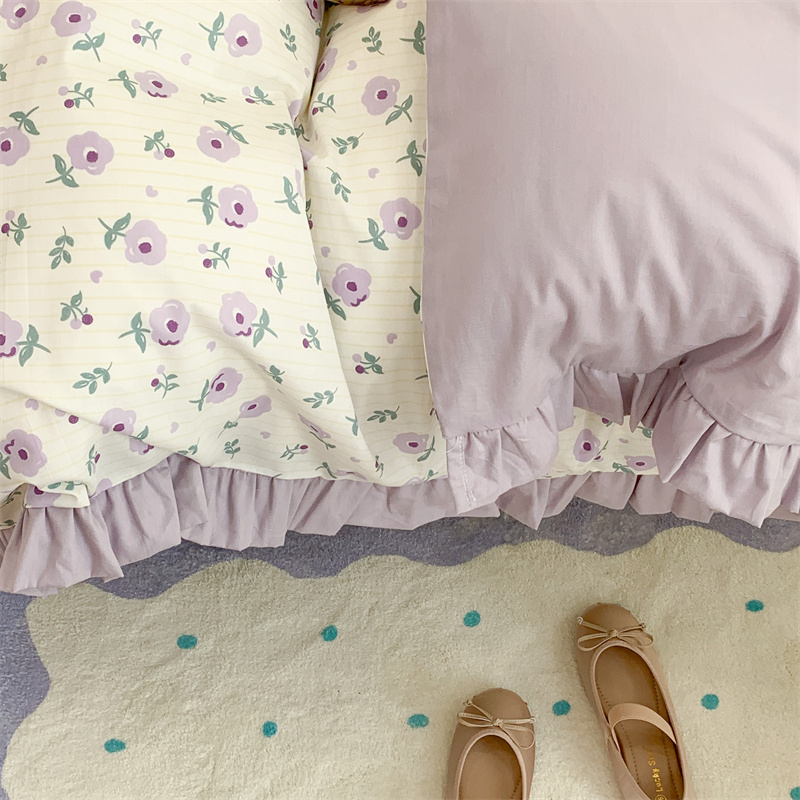 商品名称:昔可家纺 韩版对折褶皱花边全棉四件套ok 香草甜心紫