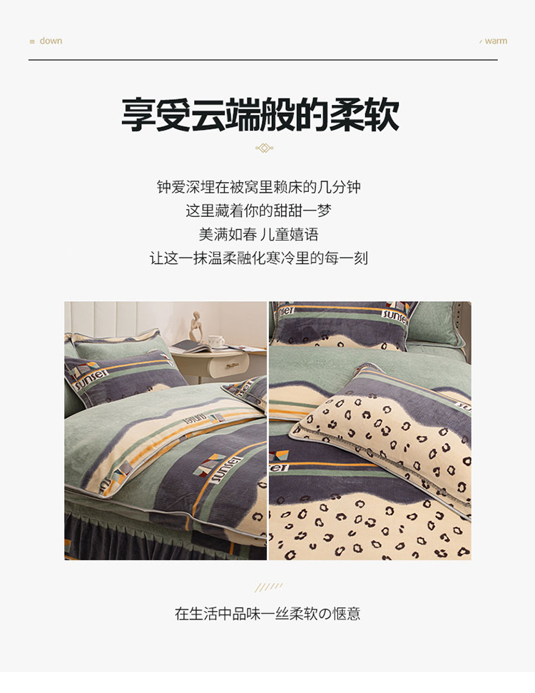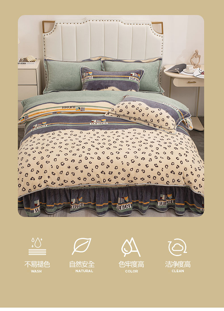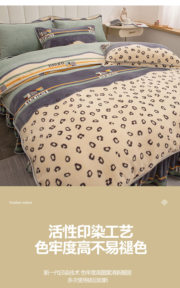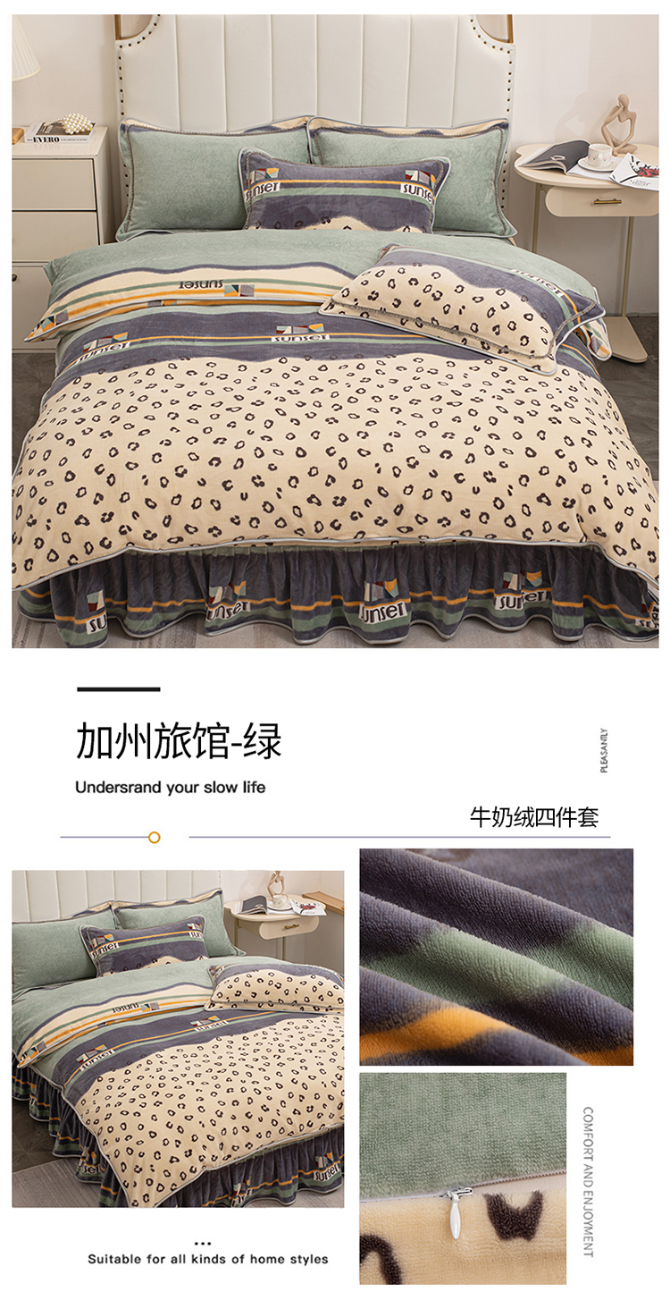 登登家纺 加厚印花牛奶金貂法莱宝宝绒四件套 加州旅馆-绿