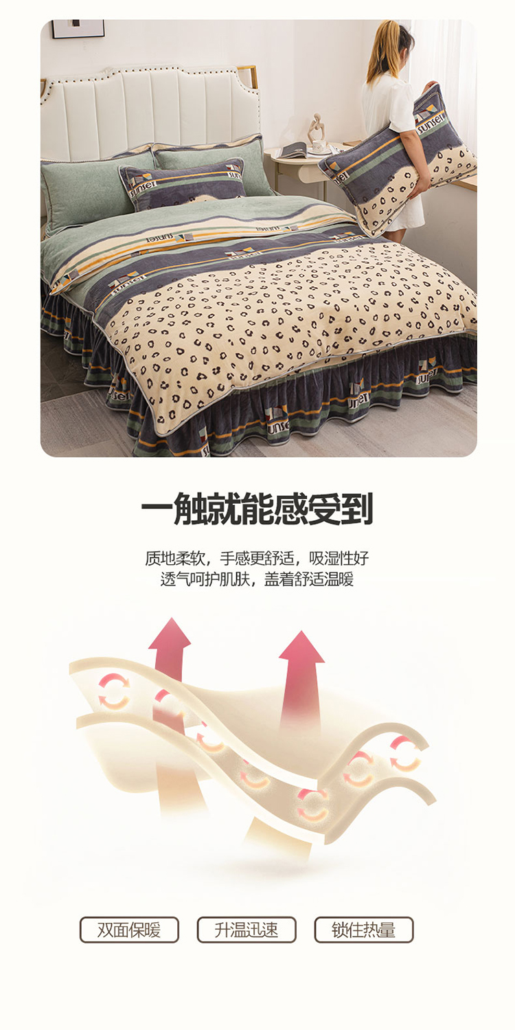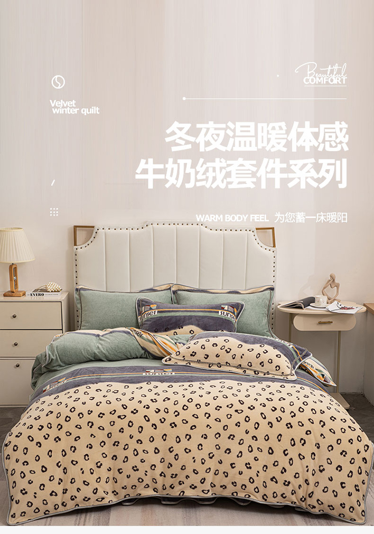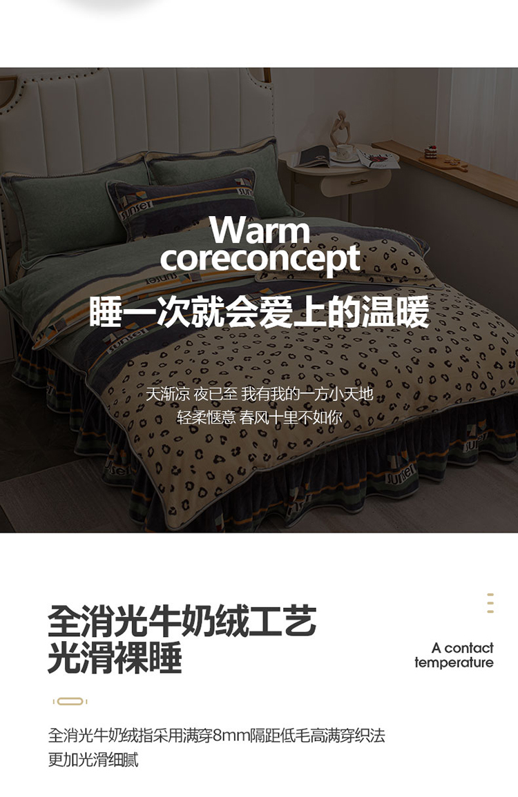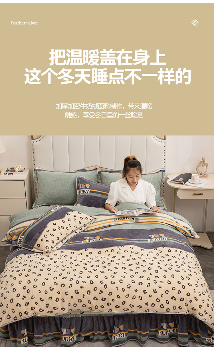 登登家纺 加厚印花牛奶金貂法莱宝宝绒四件套 加州旅馆-绿