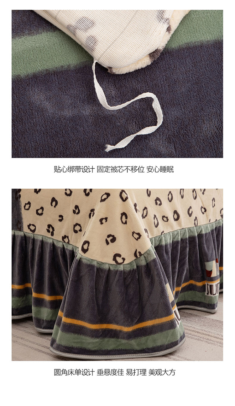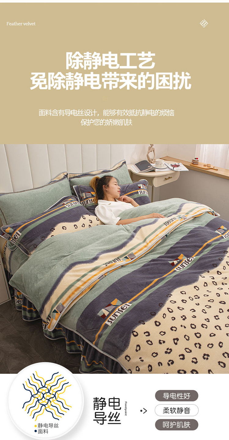 商品名称:登登家纺 加厚印花牛奶金貂法莱宝宝绒四件套 加州旅馆-绿