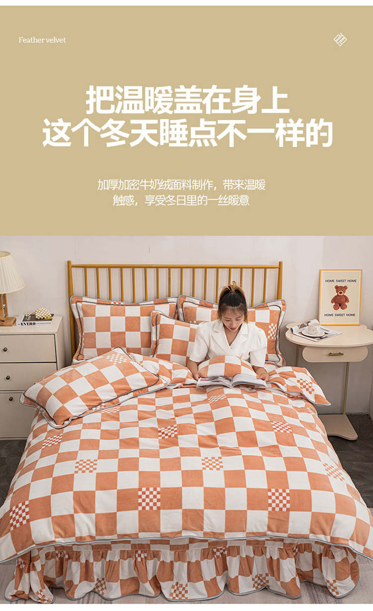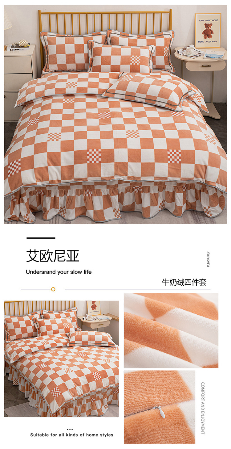 商品名称:登登家纺 加厚印花牛奶金貂法莱宝宝绒四件套 艾欧尼亚