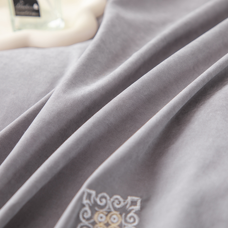 商品名称:优姿家纺 2024新款锦棉绣花四件套吊边床单一字绣枕套套件-锦绣花园 锦绣花园-灰