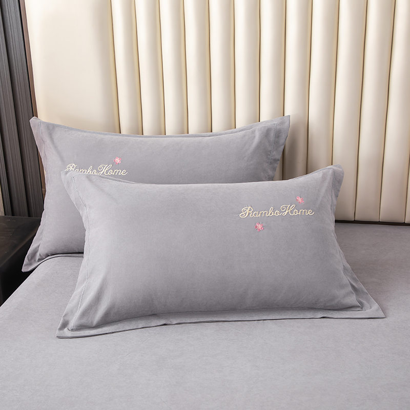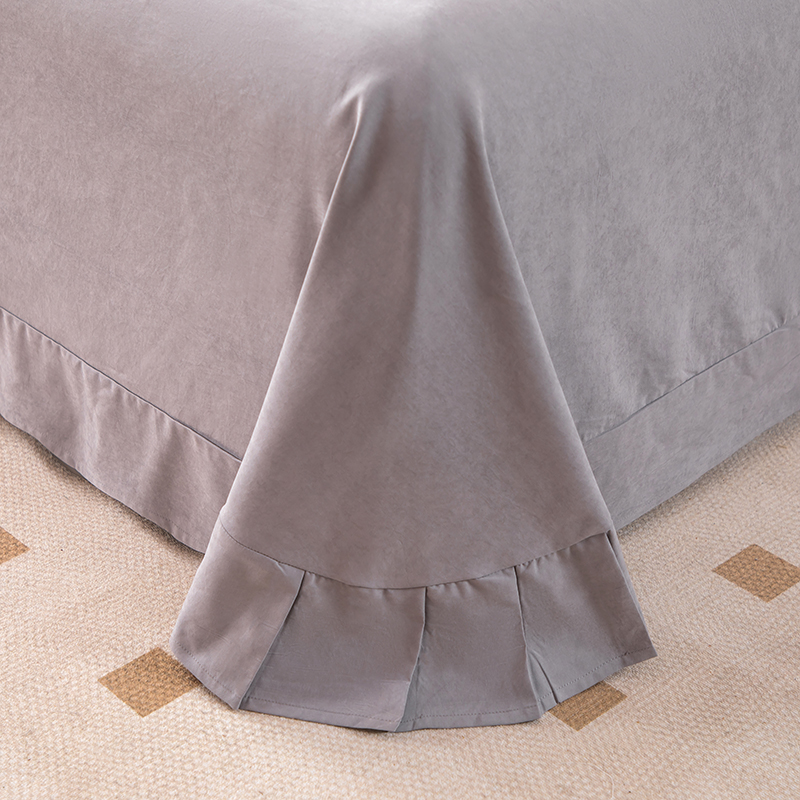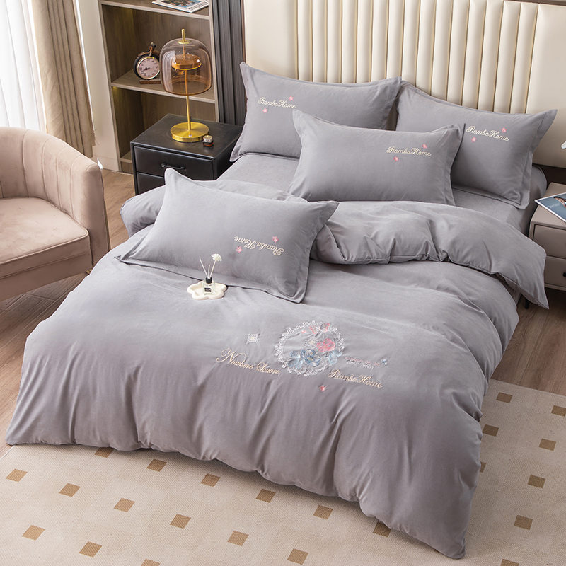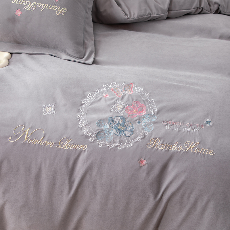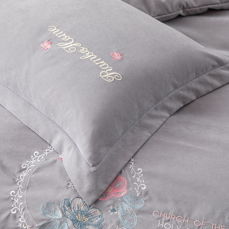 优姿家纺 2024新款锦棉绣花四件套吊边床单一字绣枕套套件-锦绣花园 锦绣花园-灰