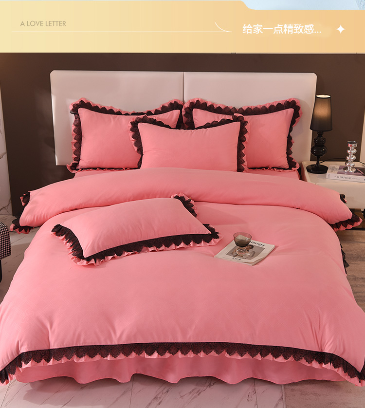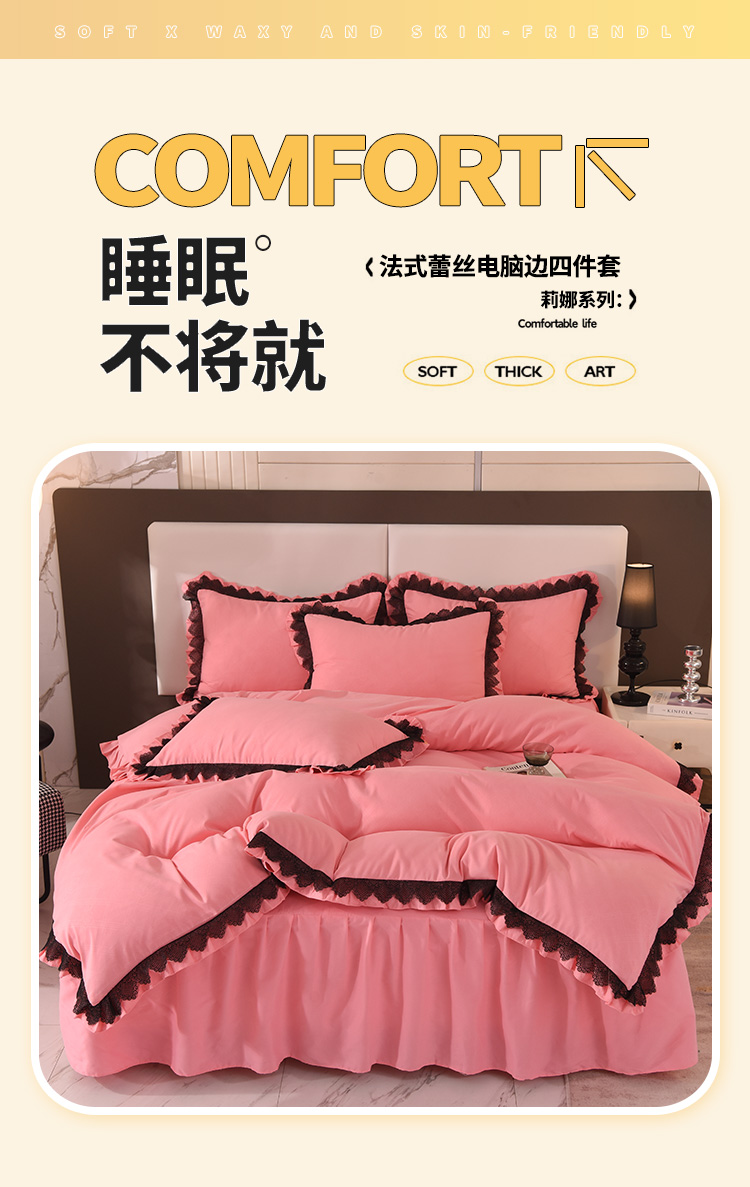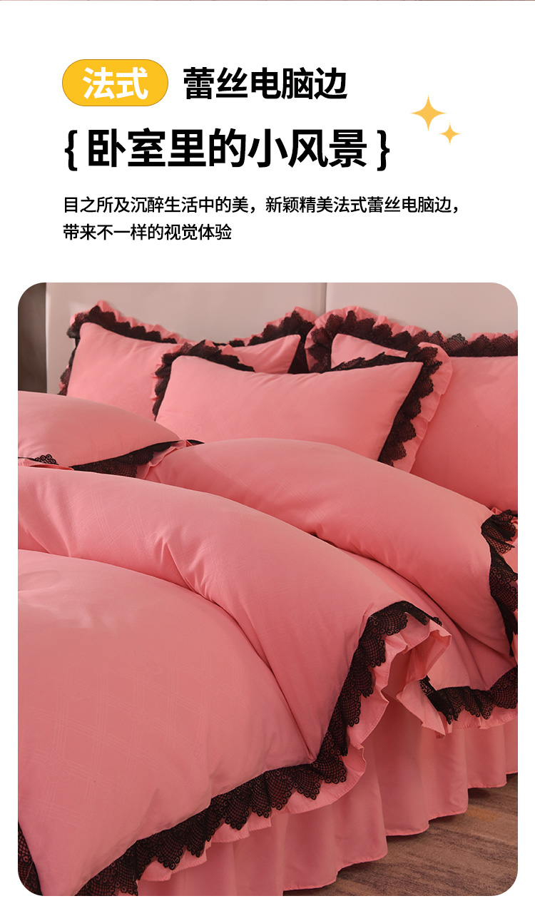 芭比蔓 2024新款法式蕾丝电脑边四件套-莉娜系列 甜蜜玉
