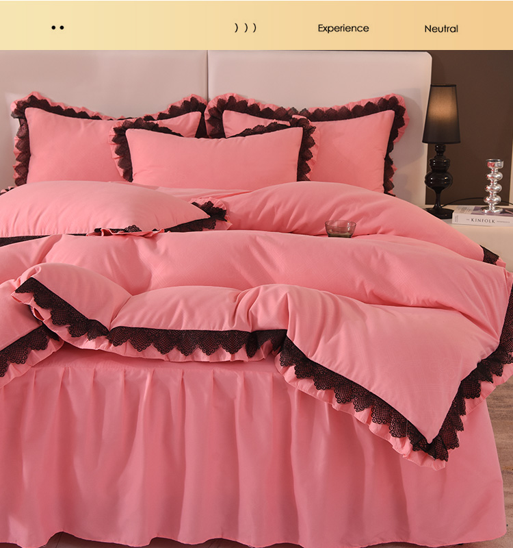(总)芭比蔓 2024新款直播供货韩版花边款牛奶绒四件套,爱玛橙,宝石红,湖蓝,倾国粉,秋月黄,深灰,珍珠白,竹青绿
