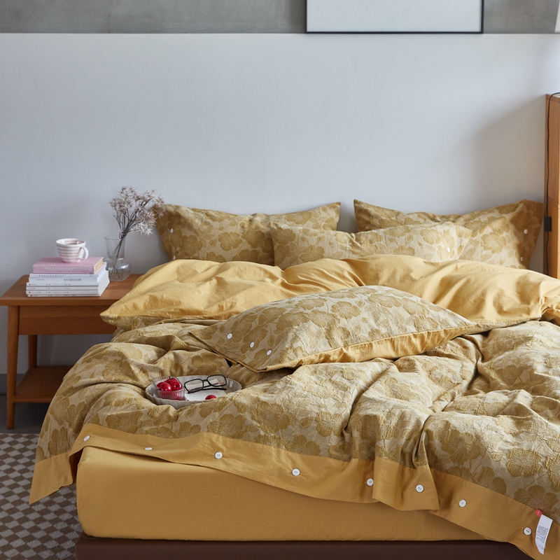 商品名称:安莱生活 2023新款双层纱大提花高奢工艺款四件套-虞美人 虞美人--苹果金