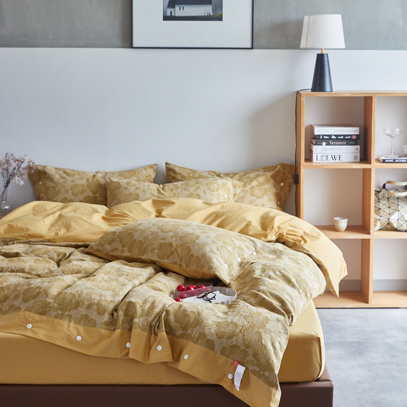 安莱生活 2023新款双层纱大提花高奢工艺款四件套-虞美人 虞美人--苹果金