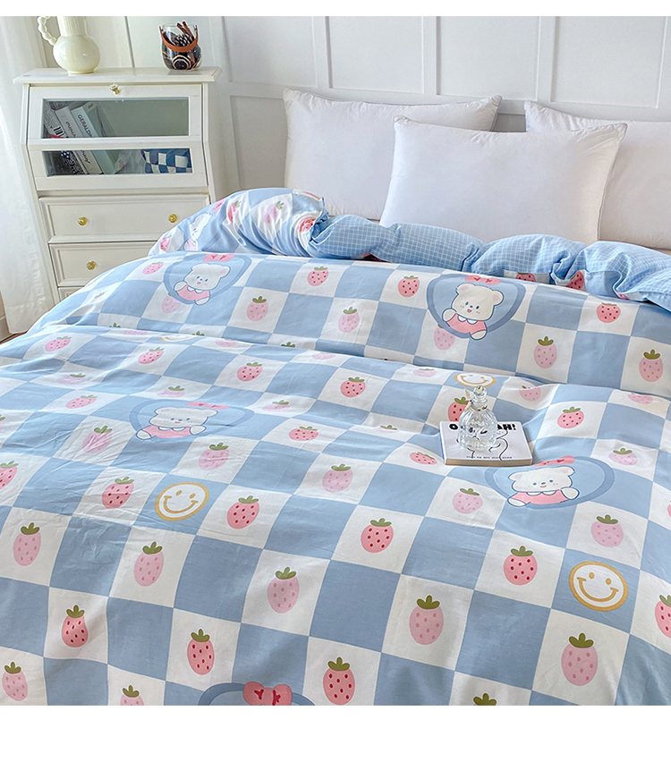 商品名称:帛织澜 2025新款全棉被套喷气12868系列纯棉单被套(预留缩水) 草莓小熊-兰
