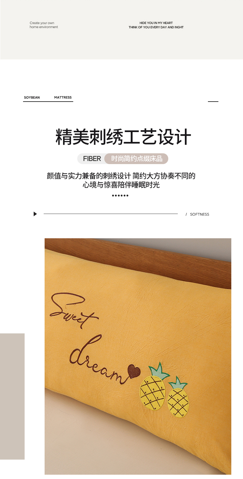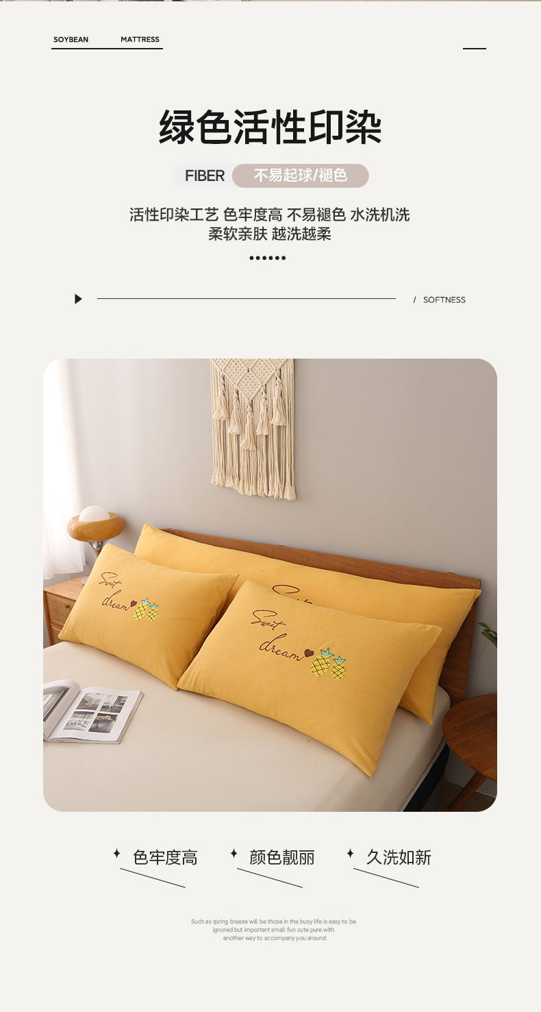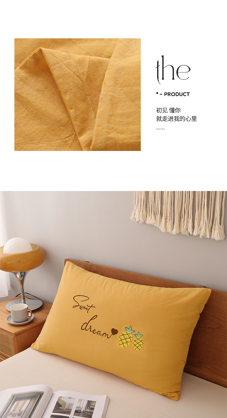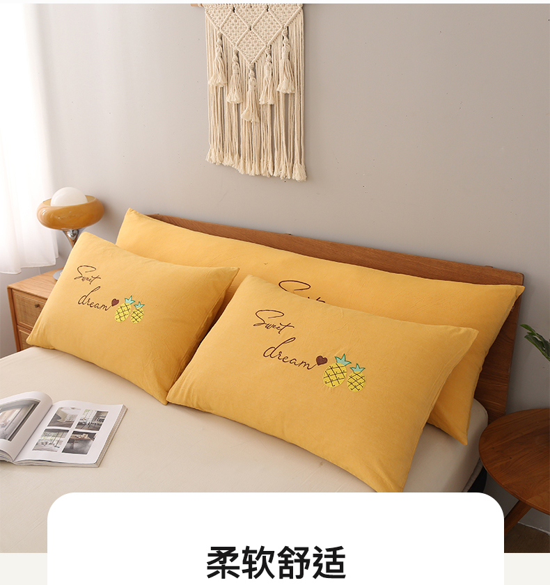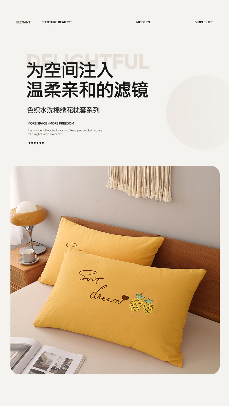 锦绣万家 2023新款色织水洗棉绣花枕套 菠萝