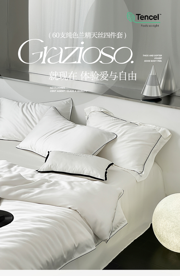 商品名称:三味舒屋 2024新款60支兰精天丝纯色四件套 风琴白