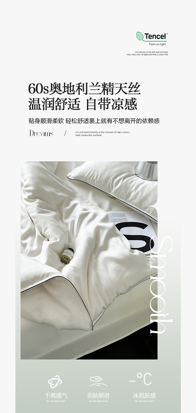 三味舒屋 2024新款60支兰精天丝纯色四件套 风琴白