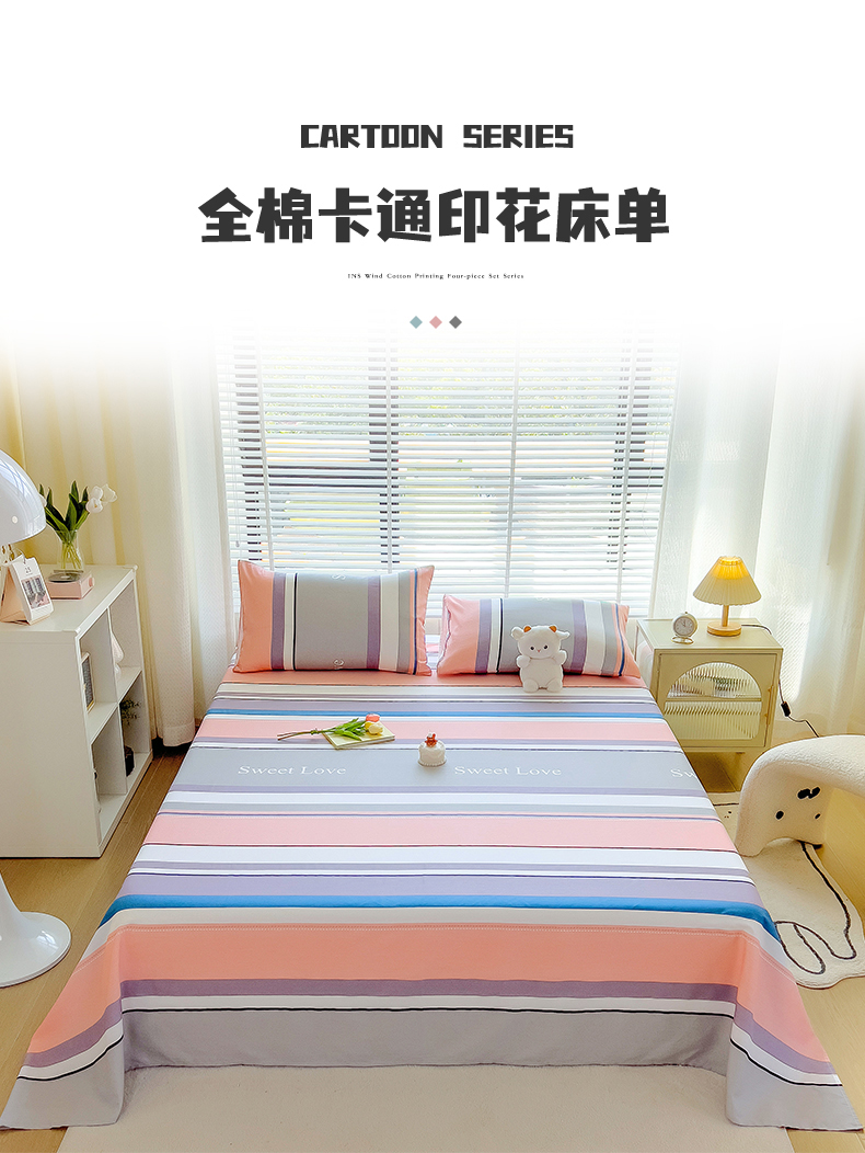 • 91家纺网 家纺一手货源 找家纺 芃成家纺 2023新款全棉13070单床单 时尚之约