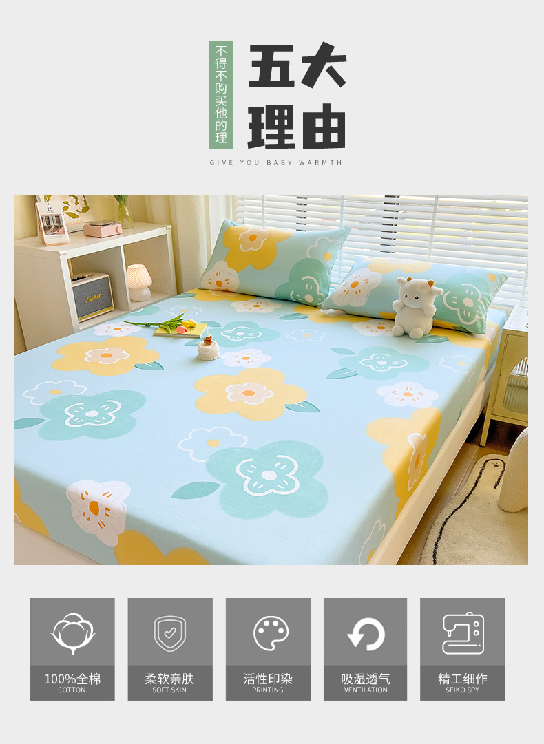 芃成家纺 2023新款全棉13070单床笠 春天里 蓝