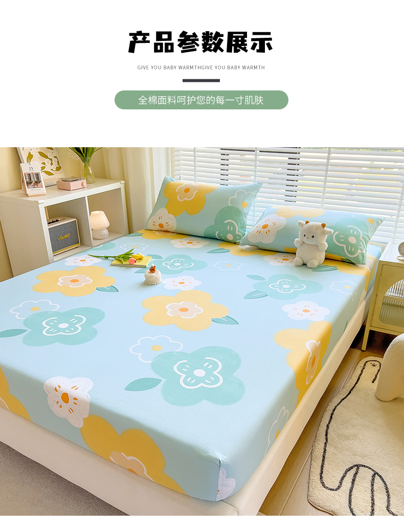 商品名称:芃成家纺 2023新款全棉13070单床笠 春天里 蓝