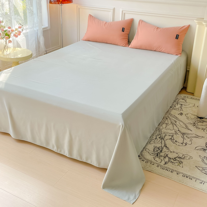 商品名称:米瑞娜2024新款水洗棉麻双拼纯色床单 奶白+冰粉床单