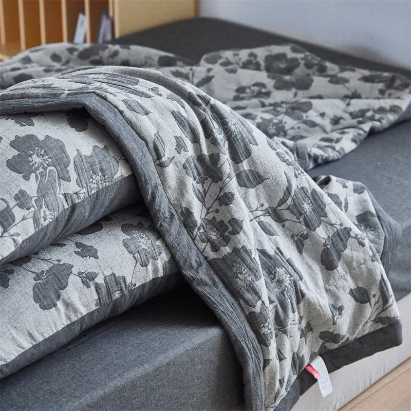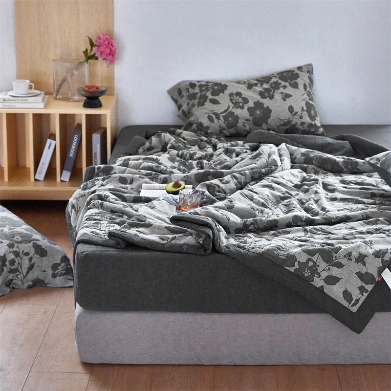 当前位置: 91家纺网 > 商品网购 > 床品套件 > 四件套 > 夏被四件套 > 安莱生活 2023新款双层纱大提花花都夏被及夏被四件套 花都-深灰