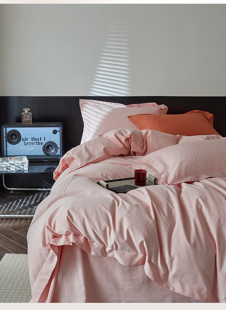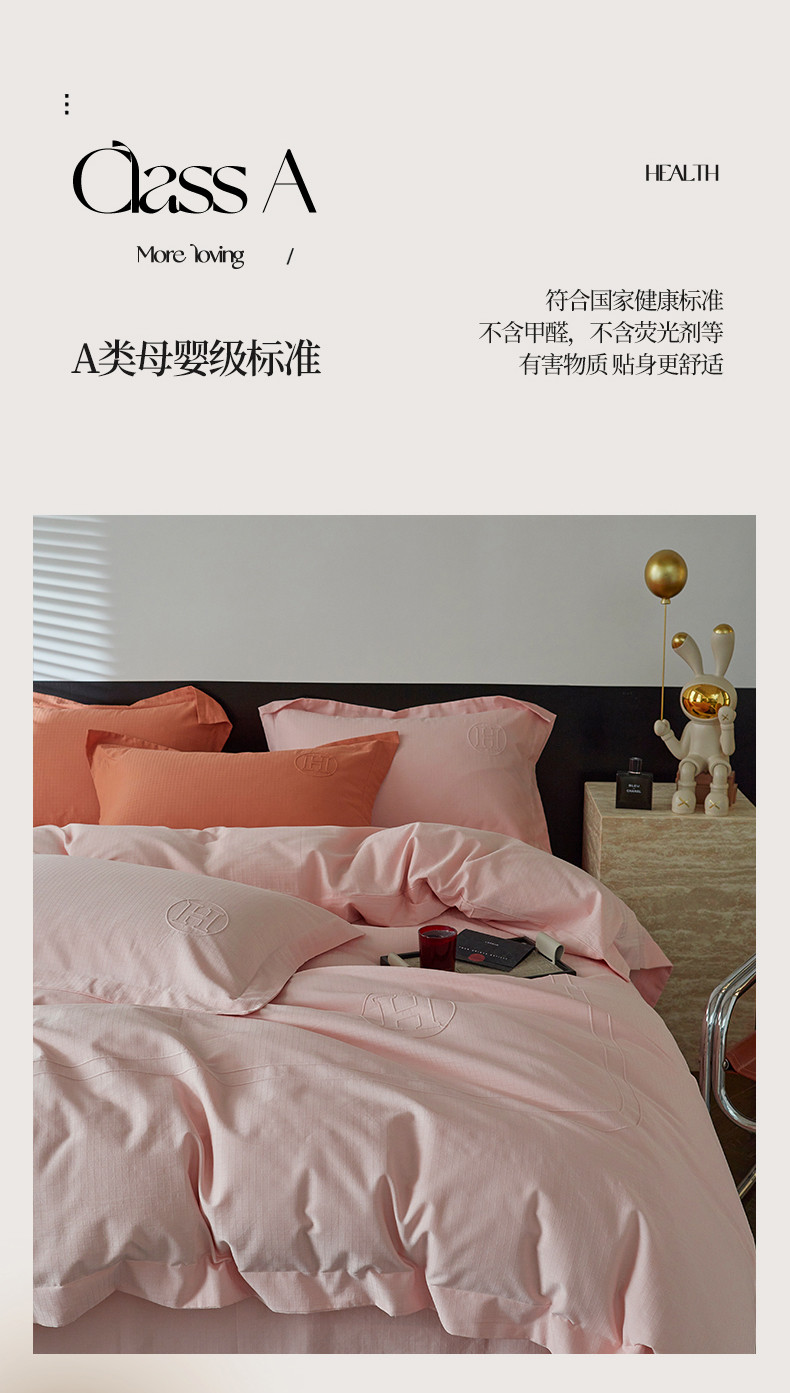 艾莱 2023新款A类长绒棉水洗80提花埋线工艺款四件套 艾华仕-裸粉