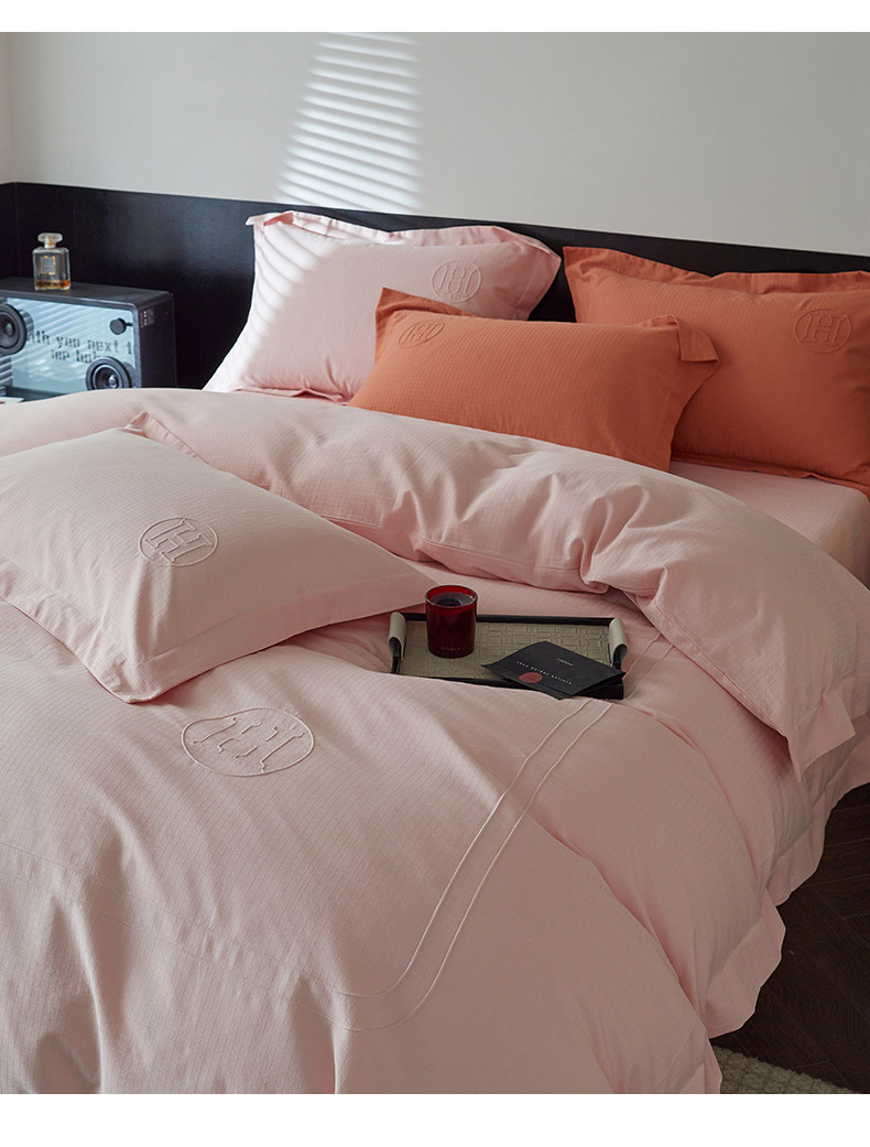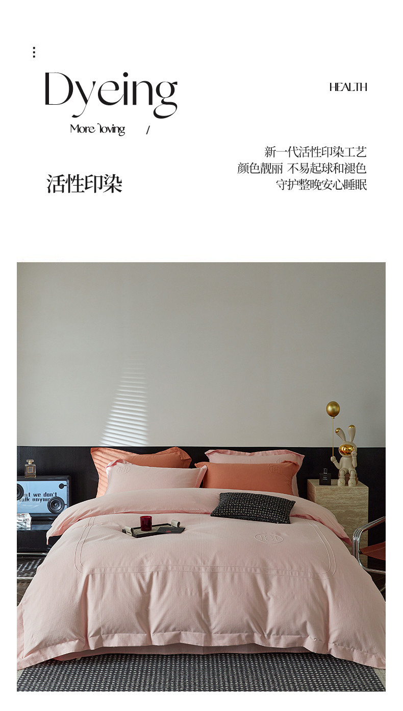 商品名称:艾莱 2023新款A类长绒棉水洗80提花埋线工艺款四件套 艾华仕-裸粉
