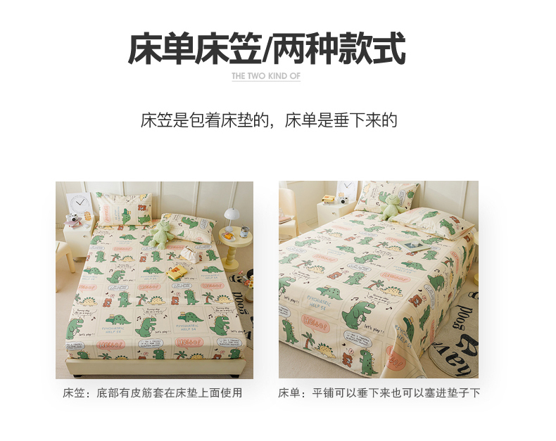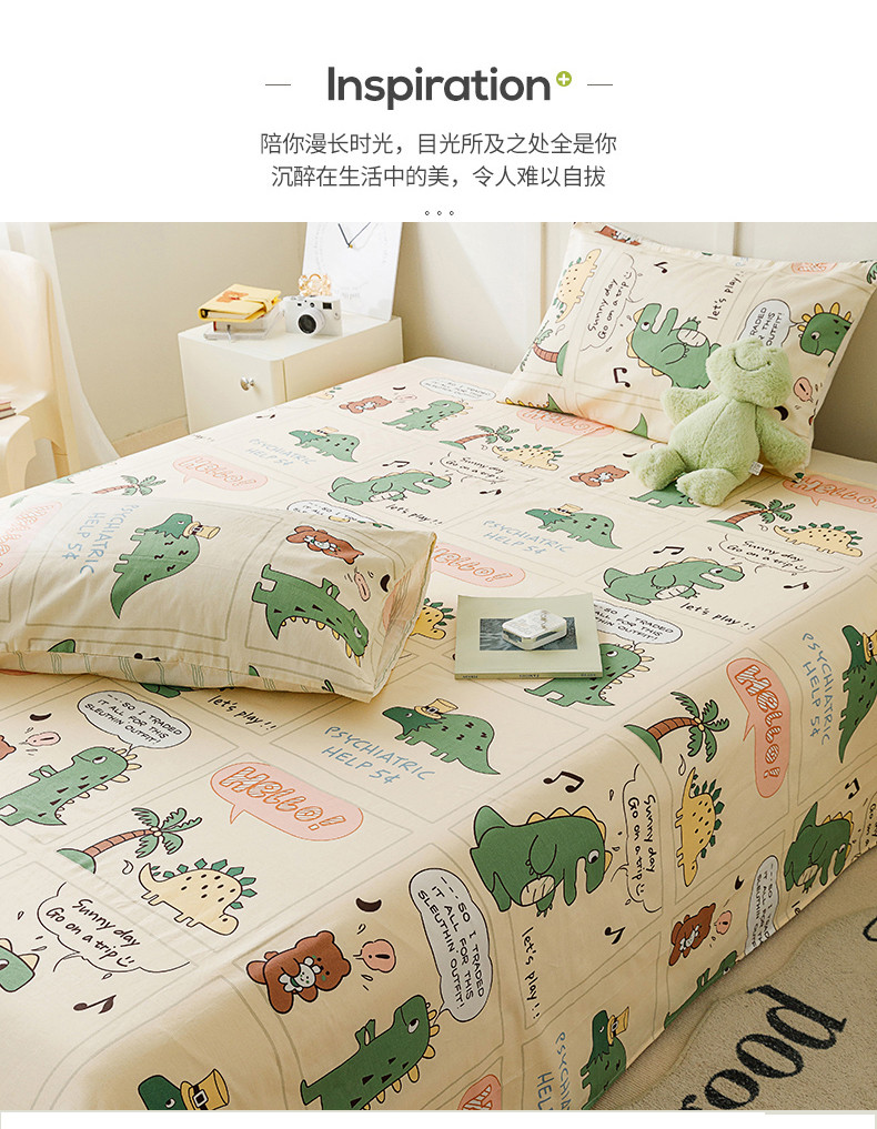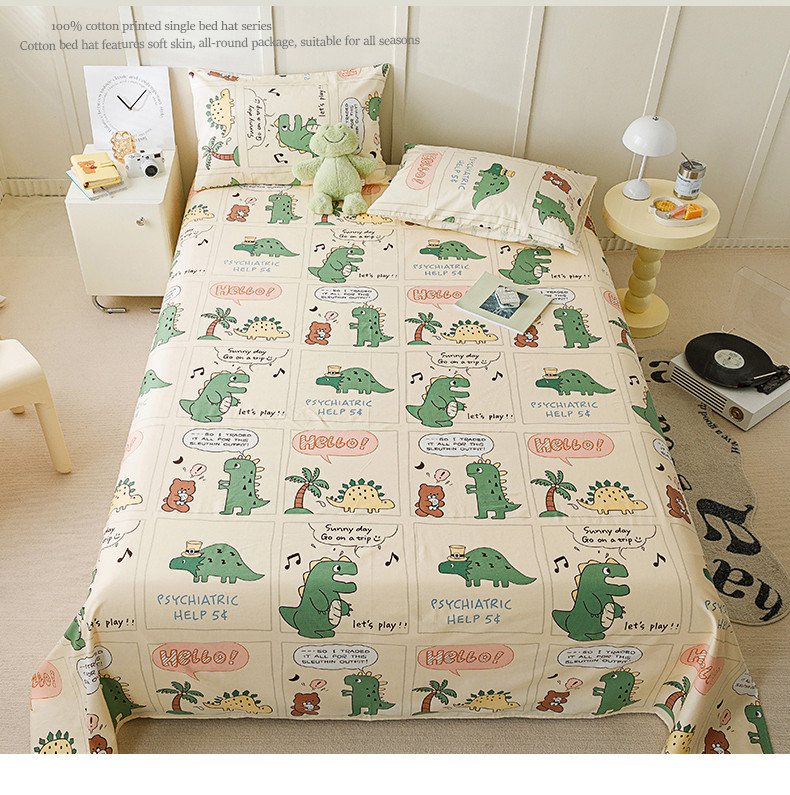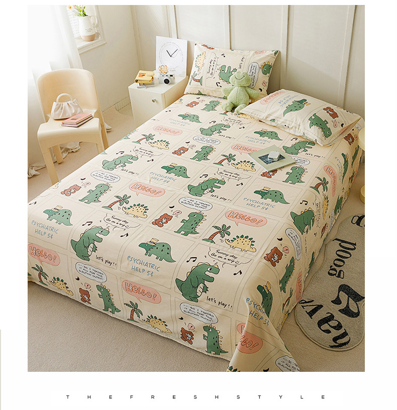 麦伦 2023新款 全棉小清新单品床单系列 恐龙萌游记