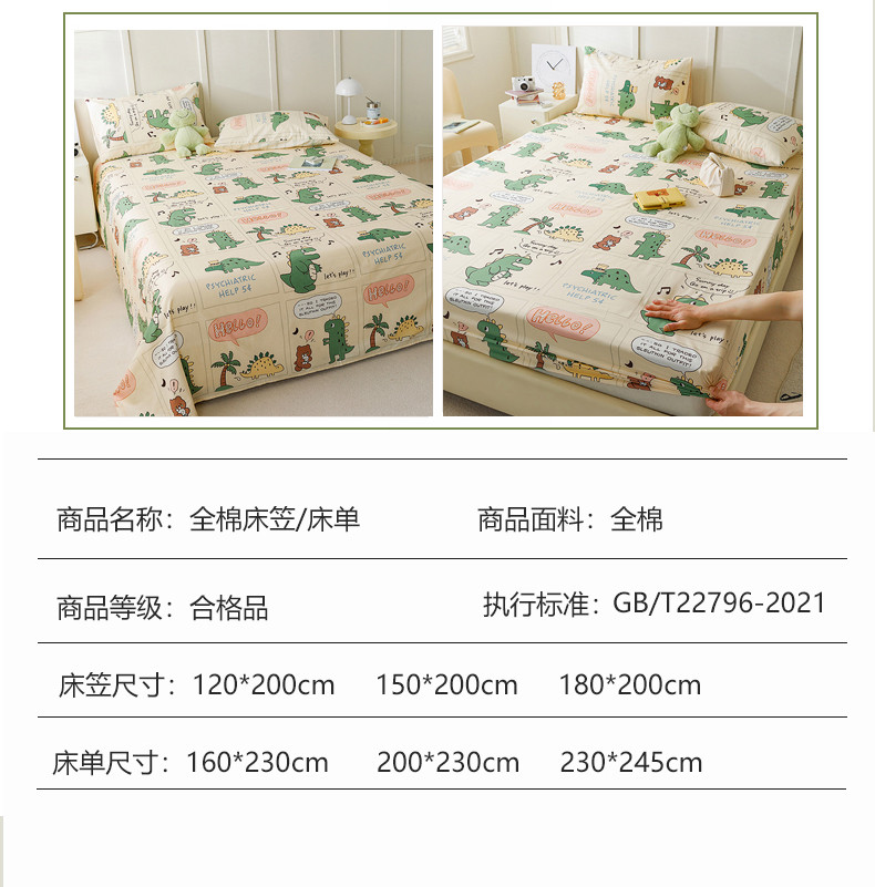 商品名称:麦伦 2023新款 全棉小清新单品床单系列 恐龙萌游记