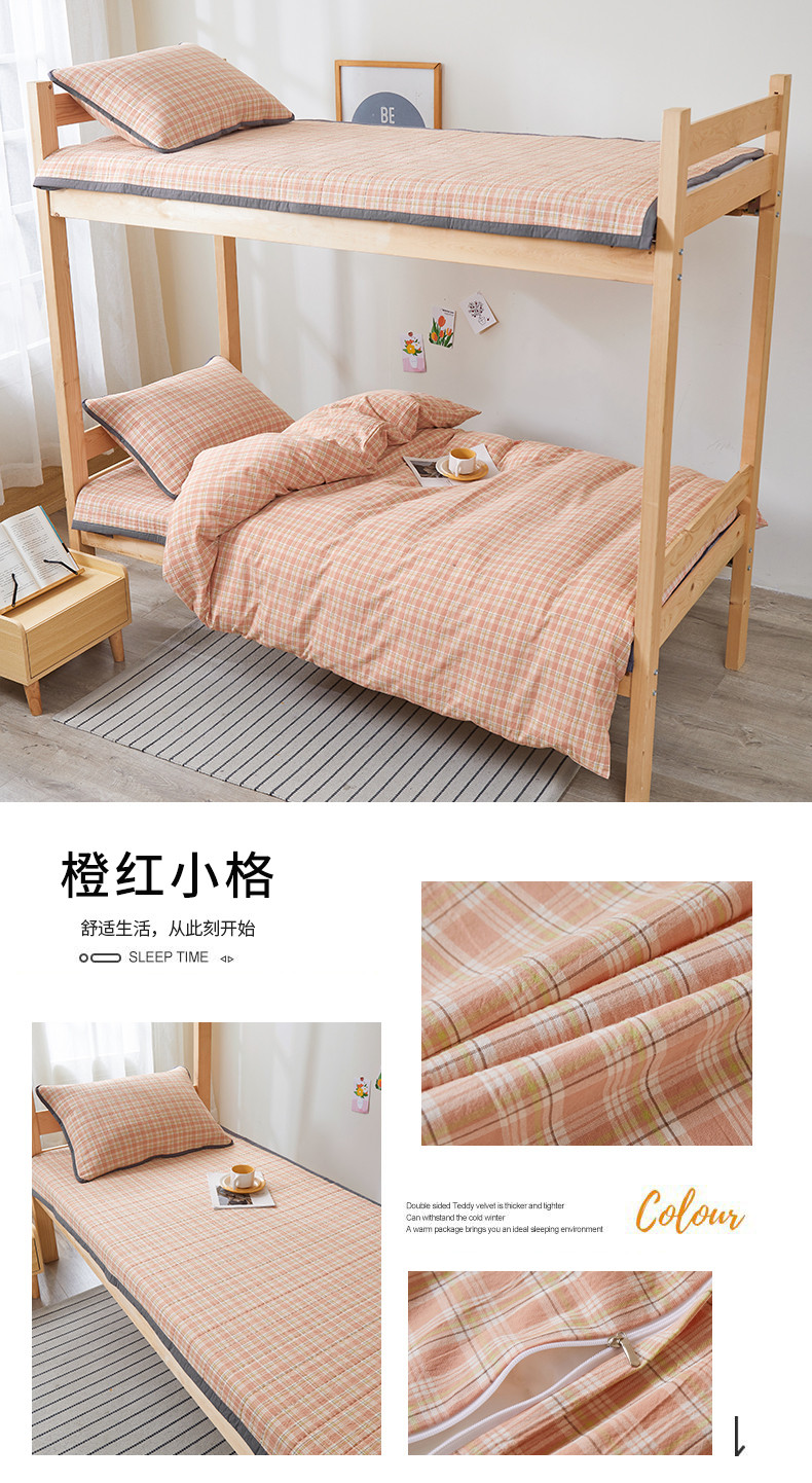 商品名称:上喜 热卖色织全棉学生床盖三件套 橙红小格