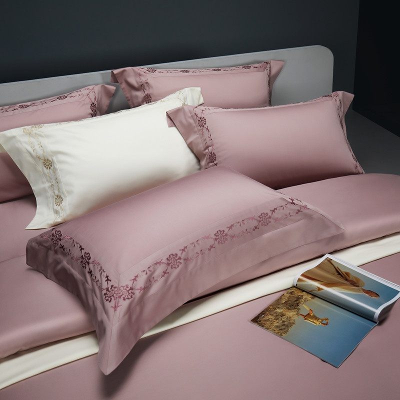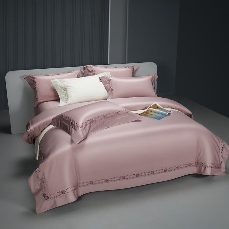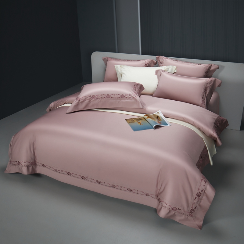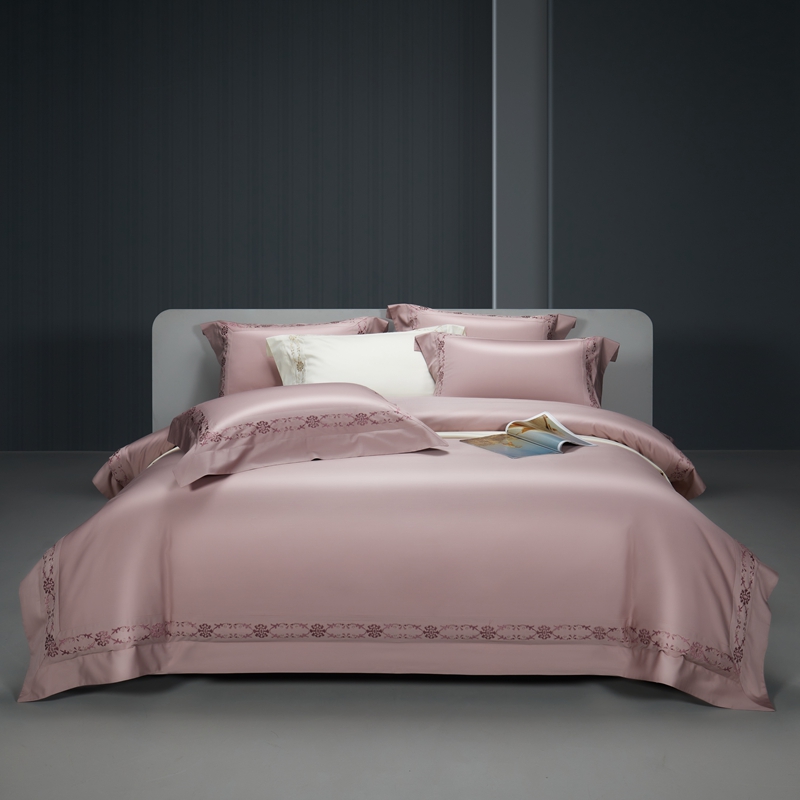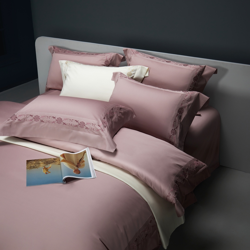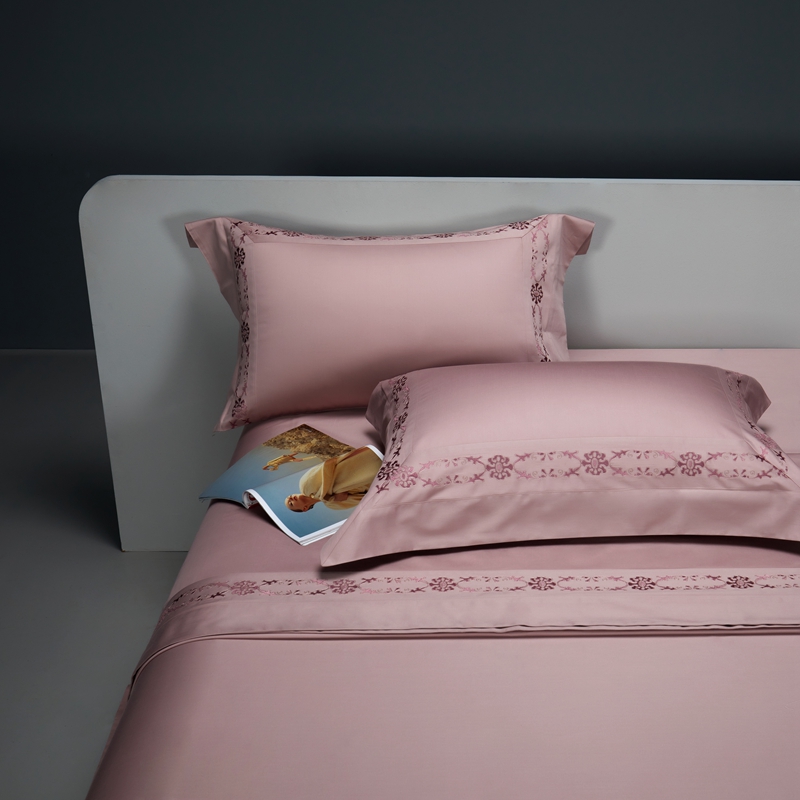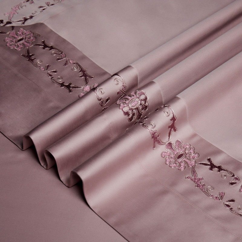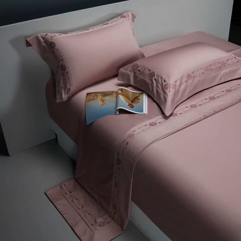 缔缦 2023新款100s澳棉刺绣四件套-优尼卡 优雅粉