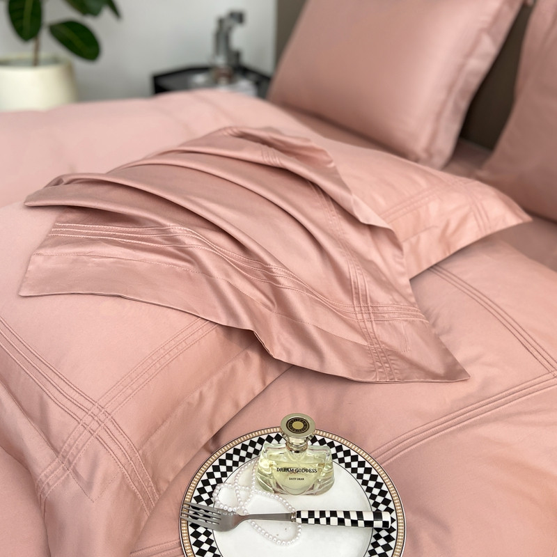 商品名称:芊寻 2024新款 长绒棉四件套 米兰之约-玫瑰木粉