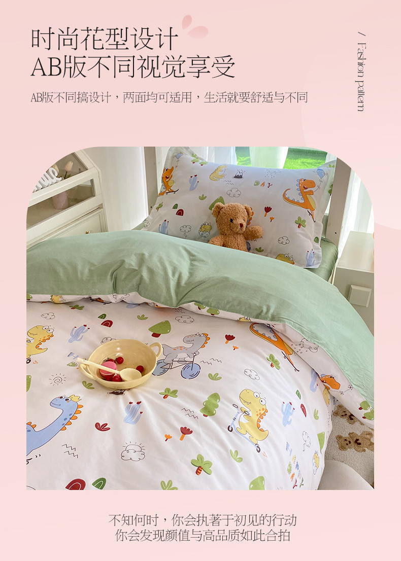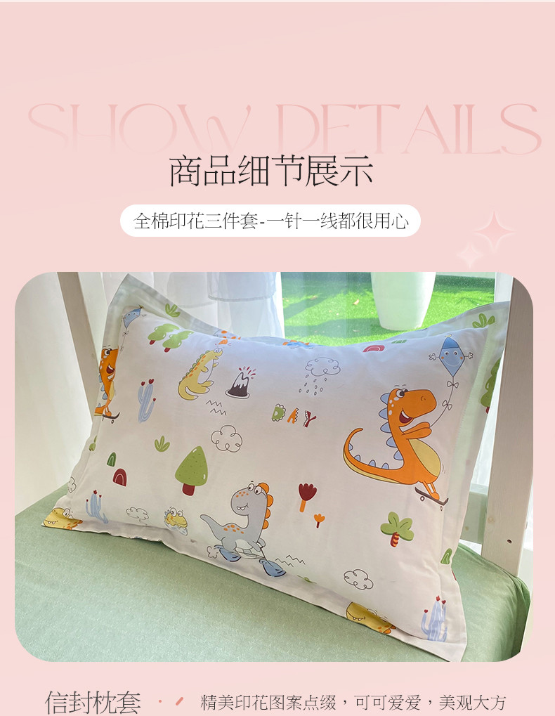商品名称:多品 2023新款12868全棉宿舍三件套-第二批 萌趣恐龙
