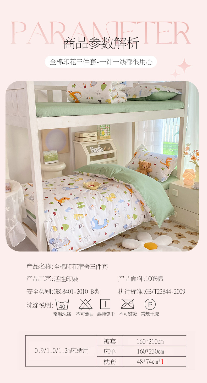 多品 2023新款12868全棉宿舍三件套-第二批 萌趣恐龙