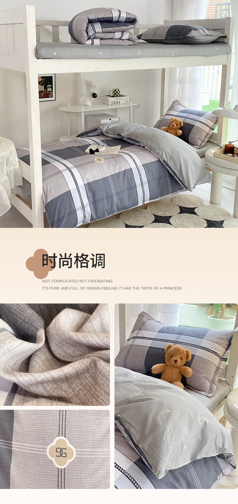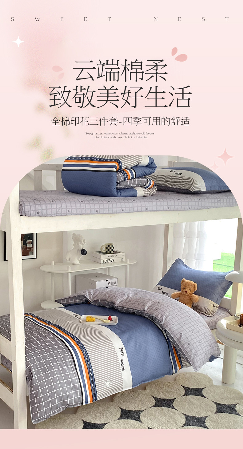 多品 2023新款12868全棉宿舍三件套-第二批 时尚青春