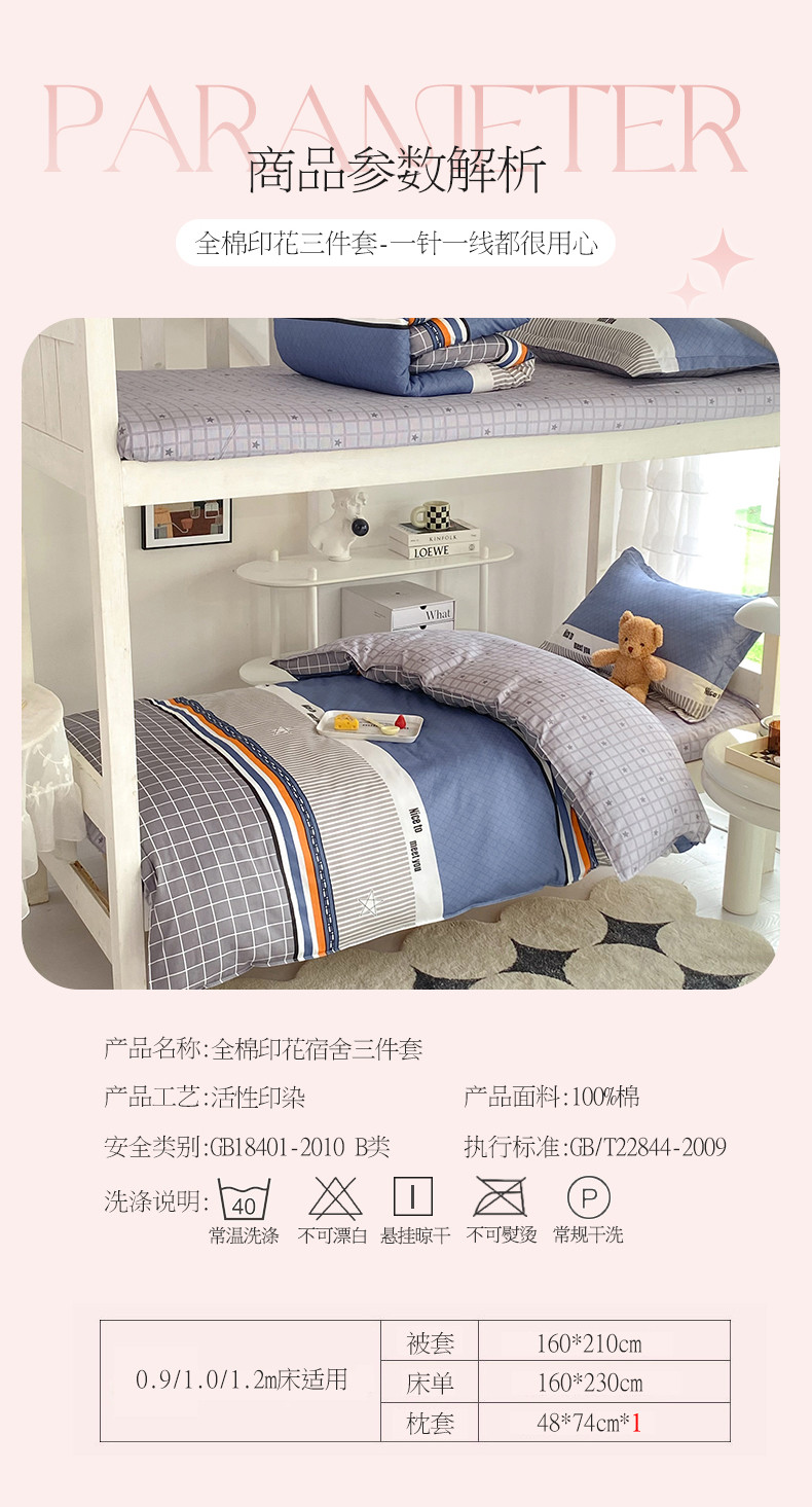 商品名称:多品 2023新款12868全棉宿舍三件套-第二批 时尚青春