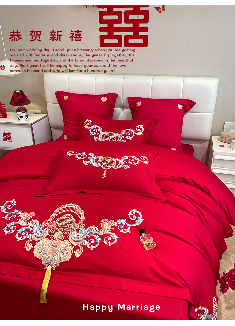 当前位置: 91家纺网 > 商品网购 > 床品套件 > 四件套 > 婚庆四件套 > 新款亲肤舒适时尚婚庆四件套系列 恭贺新禧